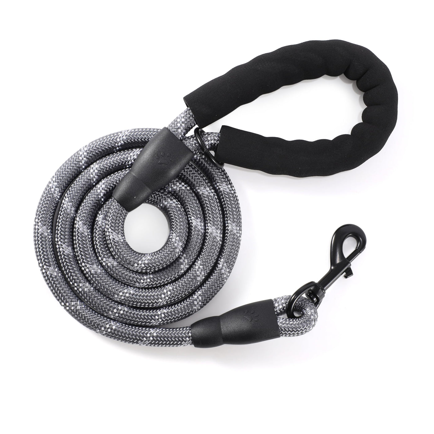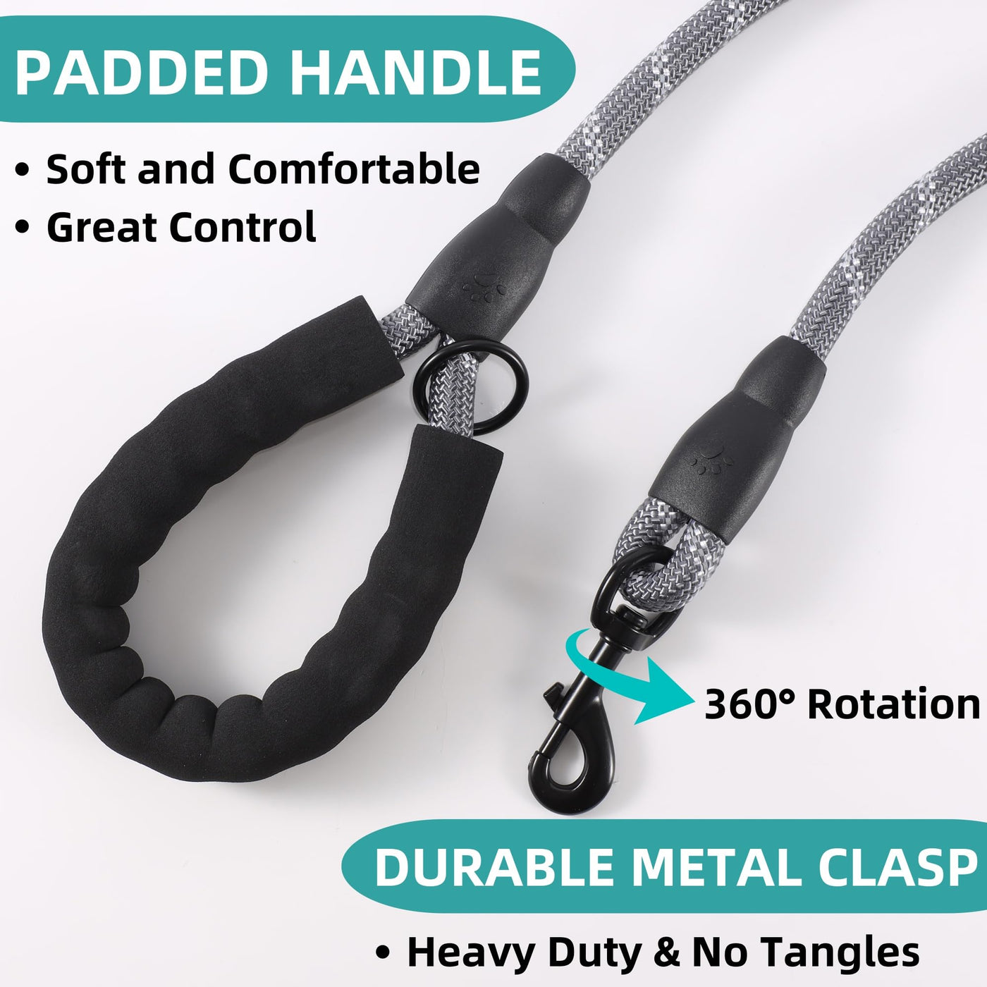 This Heavy-Duty Dog Leash Is Crafted From Ultra-Durable, Wear-Resistant Rock-Climbing Rope. It Features A Reflective Line Along Its Length, Ensuring High Visibility During Nighttime Walks, Keeping Both You And Your Dog Safe. The Leash Includes A Comfortable Padded Foam Handle For Extra Comfort And A Firm Grip, Protecting Your Hand From Rope Burn. With A Diameter Of 1/2 Inch, This Leash Is Suitable For Small Dogs And Cats, And Is Also An Excellent Choice For Medium To Large Breed Dogs. Ideal For Outdoor Activities Such As Walking, Running, And Beach Outings. The O-Ring On The Handle Lets You Hang Your Waste Bag Or Keys, Making It Easy To Enjoy Outdoor Time With Your Pets. The 360 Swivel Clasp, Made Of Nickel-Plated Zinc Alloy, Prevents The Leash From Twisting, Ensuring A Tangle-Free Experience During Outdoor Adventures With Your Dog.