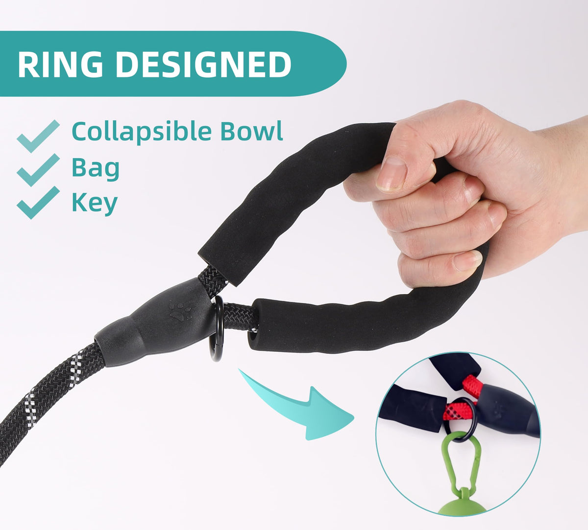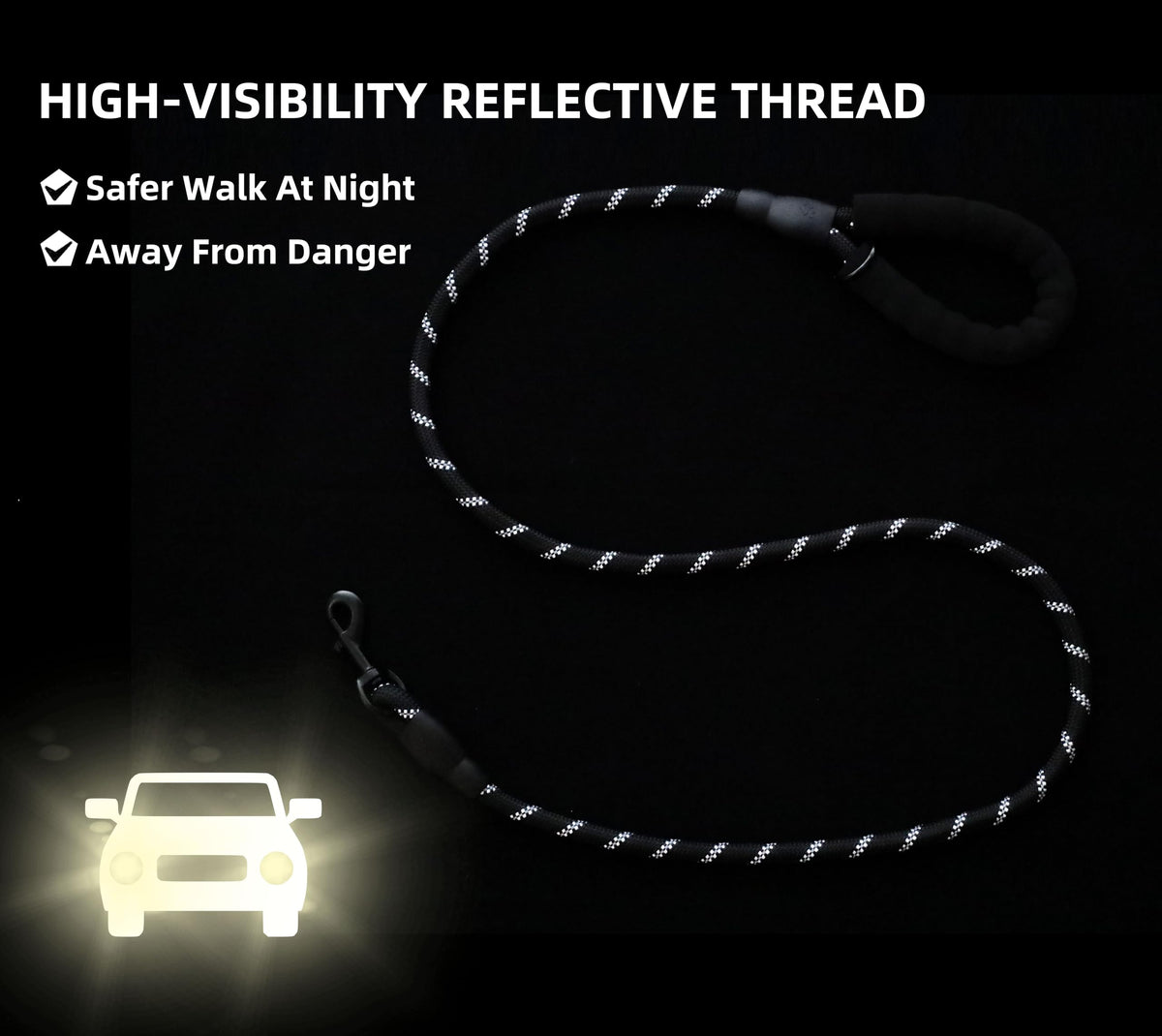 This Heavy-Duty Dog Leash Is Crafted From Ultra-Durable, Wear-Resistant Rock-Climbing Rope. It Features A Reflective Line Along Its Length, Ensuring High Visibility During Nighttime Walks, Keeping Both You And Your Dog Safe. The Leash Includes A Comfortable Padded Foam Handle For Extra Comfort And A Firm Grip, Protecting Your Hand From Rope Burn. With A Diameter Of 1/2 Inch, This Leash Is Suitable For Small Dogs And Cats, And Is Also An Excellent Choice For Medium To Large Breed Dogs. Ideal For Outdoor Activities Such As Walking, Running, And Beach Outings. The O-Ring On The Handle Lets You Hang Your Waste Bag Or Keys, Making It Easy To Enjoy Outdoor Time With Your Pets. The 360 Swivel Clasp, Made Of Nickel-Plated Zinc Alloy, Prevents The Leash From Twisting, Ensuring A Tangle-Free Experience During Outdoor Adventures With Your Dog.