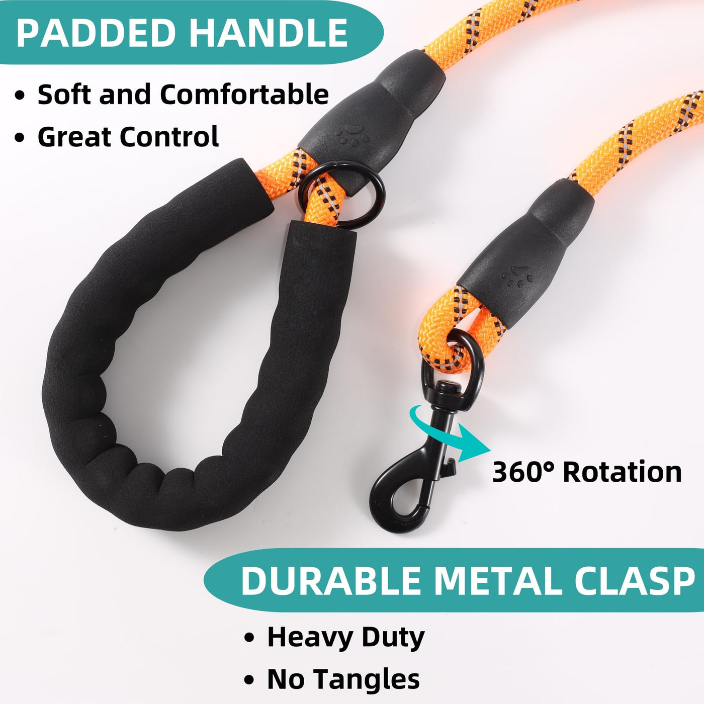 Vimfashi Heavy Duty Dog Leash With Padded Handle And Highly Reflective Threads Pet Leashes For Medium Or Large Dogs Can Hang Poo