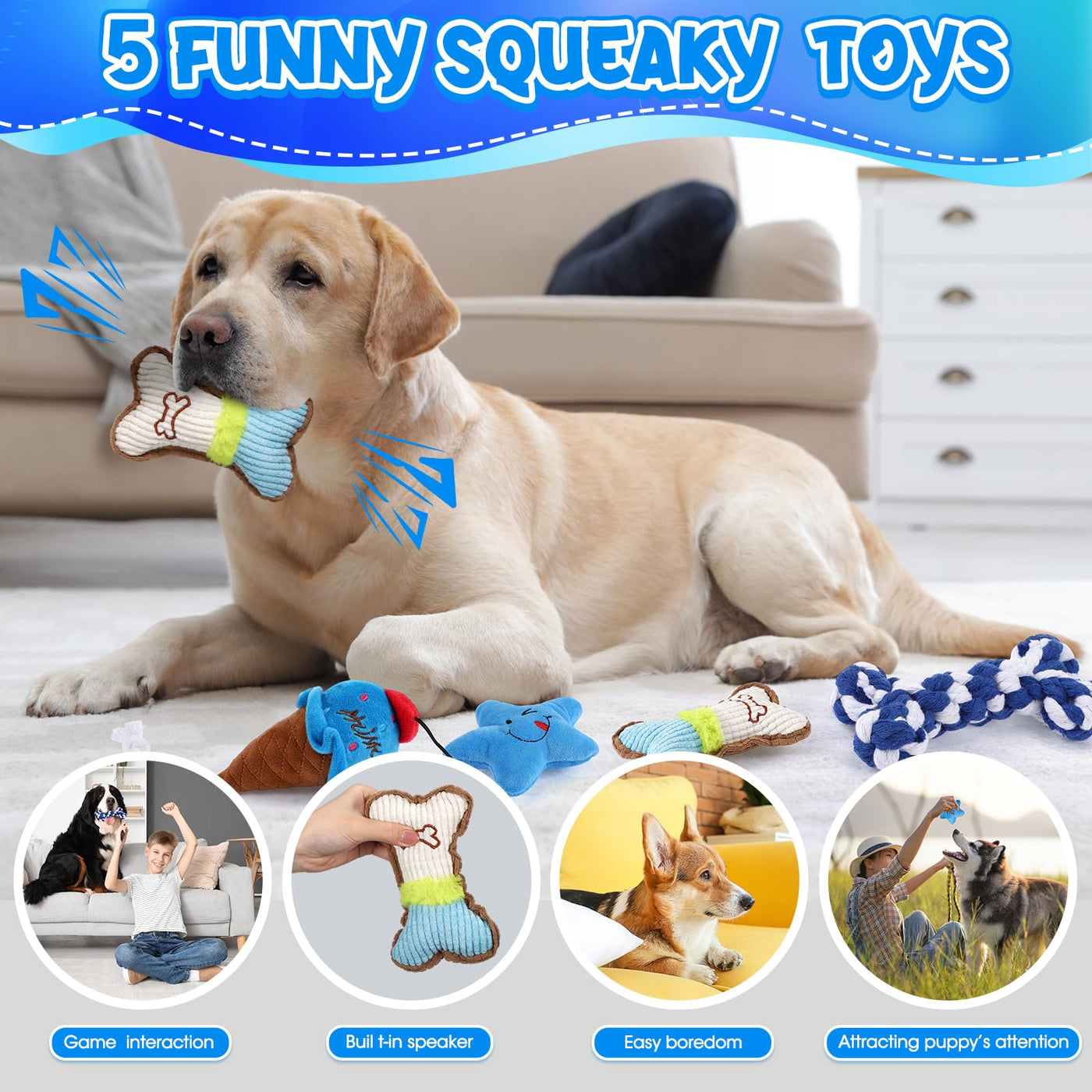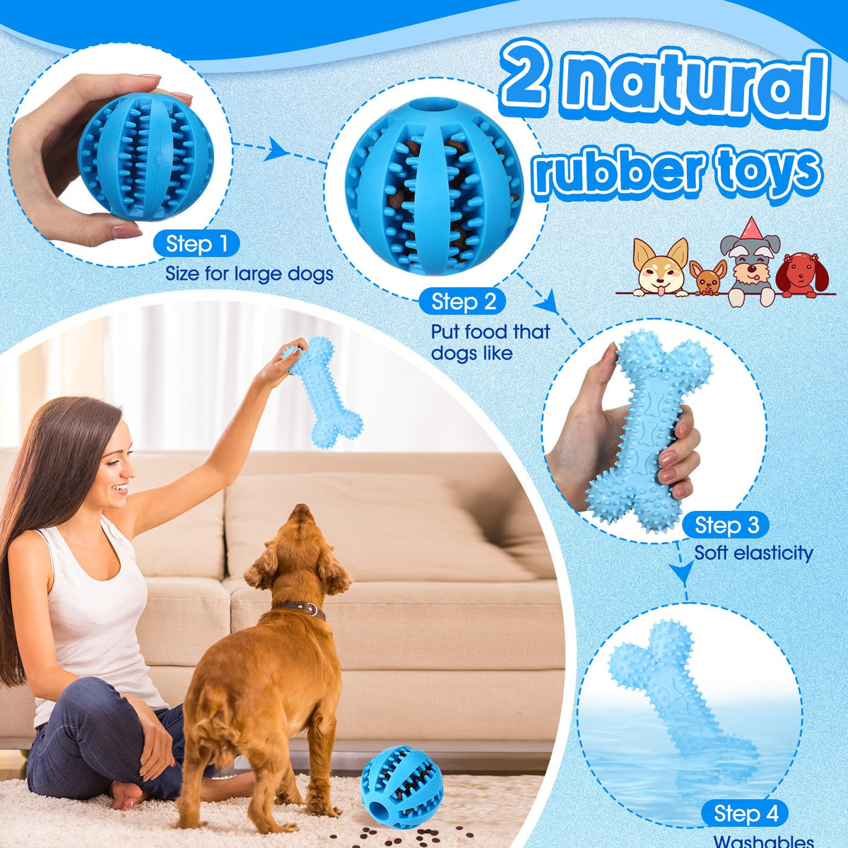 Vinsot 12 Pack Large Dog Chew Toys For Aggressive Chewers Blue Teething Toys With Dental Rope Squeaky Balls And Chew Bone For Me