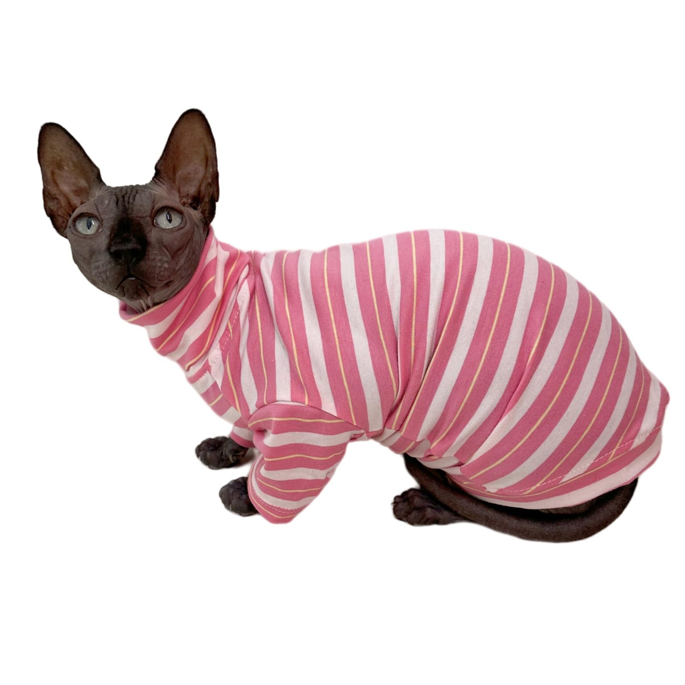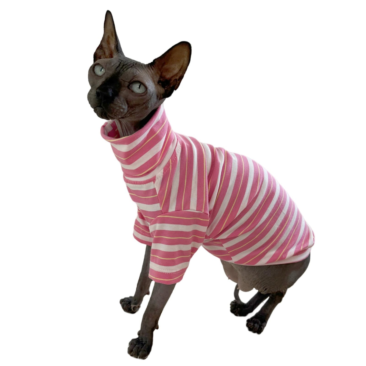 This Cat Turtleneck Shirt Is Perfect For Sphynx Cat, Devon Rex Cat, Cornish Rex Cat And Peter Bald Cat. Material: 100% Cotton Thickness: Medium Seasons: Spring, Summer, Autumn Occasion: Daily Wear, Sleeping, Taking Photo, Holiday, Party And Any Other Occasions. * Please Refer To Size Chart Before Shopping * Size Information: L: Back Length: 13'', Chest Girth: 13.3'', Reference Weight 6.6-8.8 Lbs. Xl: Back Length: 14'', Chest Girth: 14.5'', Reference Weight 9-11 Lbs. Xxl: Back Length: 15.3'', Chest Girth: 165.7'', Reference Weight 11-13 Lbs. Size Suggestions: 1.If Any Of The Measurements Are 'Between' Two Sizes, Choose The Larger Size. 2.If Your Pet Cat Is Growing Up, You Can Order A Bigger Size. 3.Take Each Measurement A Bit Loosely, So There Will Be Room For Your Cat To Move And Breathe, But Not Too Loose. Why A Hairless Cat Need To Wear A Coat? 1.Without The Protect Of Cat Hair, Sphynx Hairless Cat Is Very Sensitive To Temperature And Easy To Get Hurt. 2.Their Cool Appearance Is Very Suitable For Dress Up And Taking Photos. So High Quality Cotton Clothes Are Quite Needed To Protect And Beautify Them. How To Choose Clothes For A Hairless Cat? In Summer, We Need To Dress Them Up Or Keep Away Direct Sunlight To Protect Them From Sunburn. In Winter, Warm Clothes Are Very Necessary To To Keep Them From Catching A Cold Or Get Frozen. Temperature Above 25 Degrees, Thin T-Shirts Or Vest Would Be Good Choice. Temperature From 15-25 Degrees, They Need To Wear Medium Thick Cotton Coats. Temperature From 10-15 Degrees, They Need To Wear Thick Cotton Coats. Temperature Under 10 Degrees, They Need To Wear Winter Cotton-Padded Jacket.