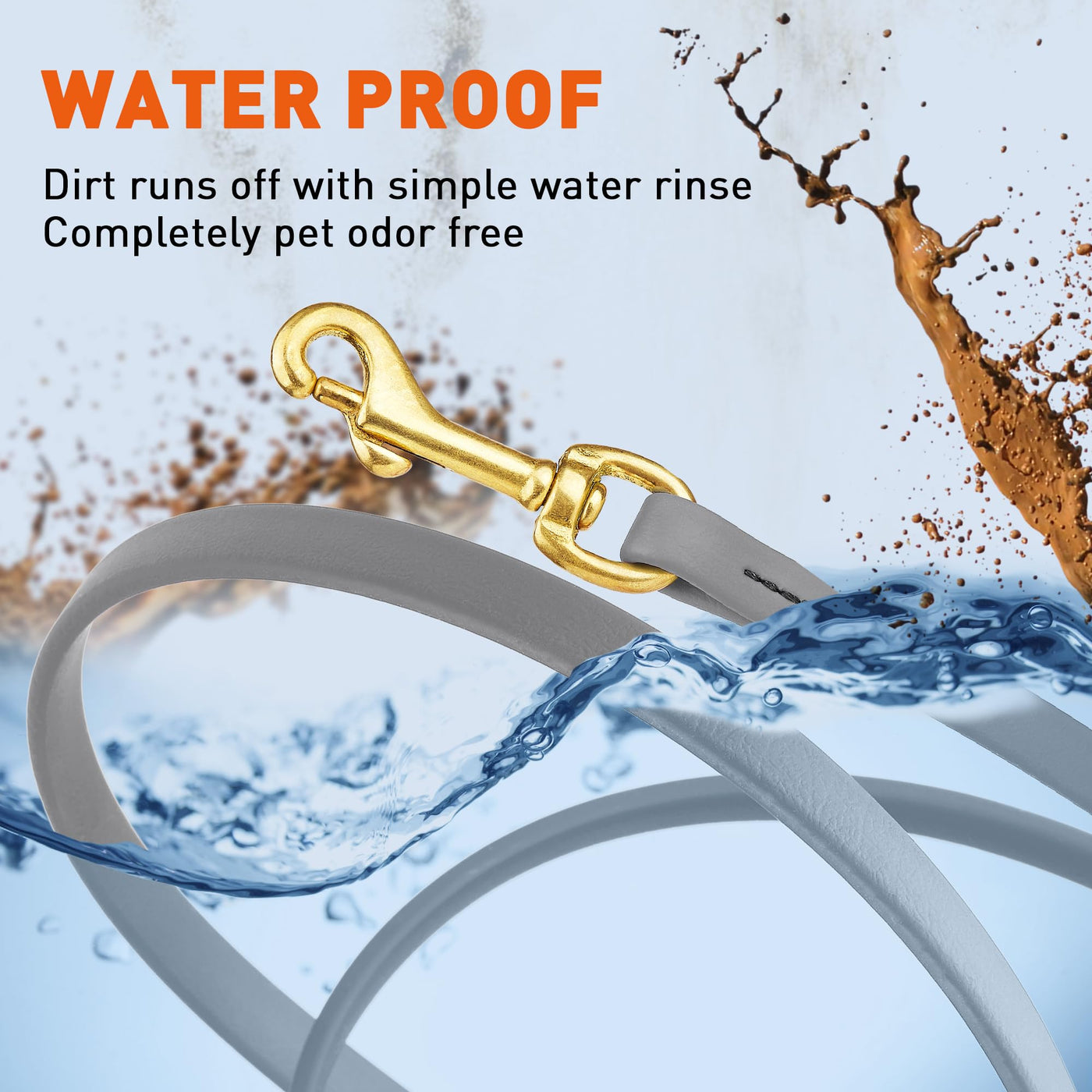 Q: Is the Viper Biothane Dog Leash waterproof?A: Yes, the Viper Biothane Dog Leash is made from high-quality Biothane coated webbing that is waterproof, ensuring it remains functional and clean even in wet conditions.