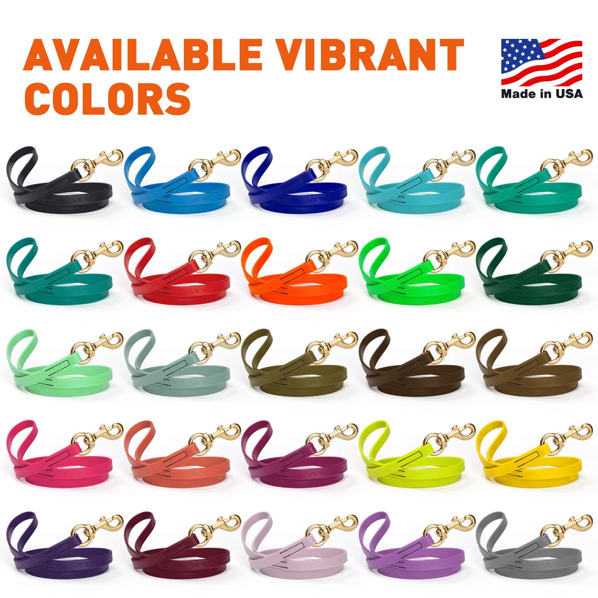 Q: What colors and sizes are available for the Viper Biothane Dog Leash?A: The Viper Biothane Dog Leads are available in 13 different colors and come in 3 widths and 2 different lengths, ensuring a perfect fit for any dog and task.
