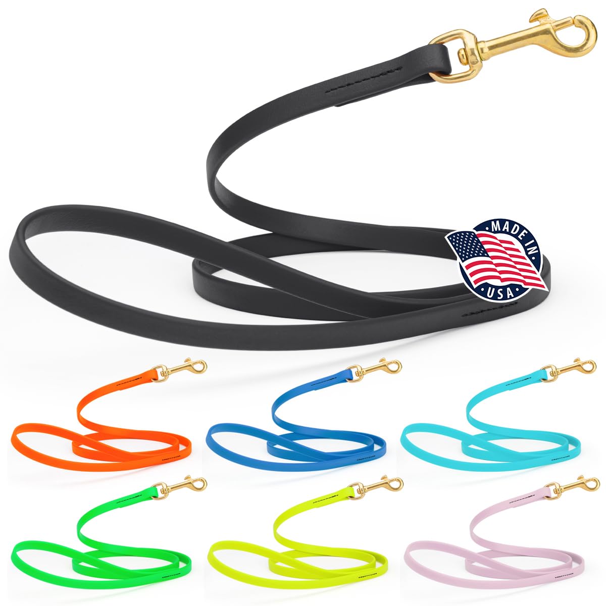 Our Biothane Working Lead Is Created From A High Quality Biothane Waterproof Coated Webbing. A Trusted Name In National Sports Leagues As Well As International Military And Space Organizations, Biothane Has A Flexible Substrate Core That Is Bonded With A Durable Waterproof Coating For Protection. It Is Durable And Cleanable, And Has Proven Durability In Applications Where Safety, Cleanability, Flexibility, And Strength Are Crucial. The Dog Lead Will Not Get Stiff During Extreme Cold And Will Not Melt During Extreme Heat. Super Heavy Biothane Webbing Has Up To 750 Lbs Of Breaking Strength. Made In The Usa From The Highest Quality Materials, Our Biothane Dog Leads Come In 25 Different Colors, 3 Widths And 3 Different Lengths, Ensuring That There Is A Suitable Lead For Any Dog And Every Task.