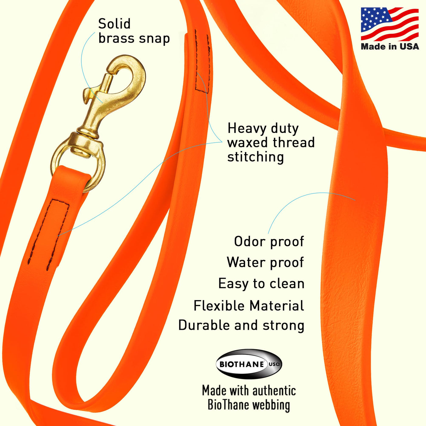 Our Biothane Working Lead Is Created From A High-Quality Biothane Waterproof Coated Webbing. A Trusted Name In National Sports Leagues As Well As International Military And Space Organizations, Biothane Has A Flexible Substrate Core That Is Bonded With A Durable Waterproof Coating For Protection. It Is Durable, Cleanable, And Has Proven Durability In Applications Where Safety, Cleanability, Flexibility, And Strength Are Crucial. This Robust Webbed Dog Lead Is Specially Coated To Emerge From Even The Swampiest Environments, Dry And Smell-Free, Without Loss Of Flexibility. Biothane Dog Leash Boasts A Flexible Substrate Core Bonded With A Waterproof Coating, Perfect For Environs Where Strength And Cleanliness Are Crucial. It Will Not Get Stiff During Extreme Cold And Will Not Melt During Extreme Heat. Super Heavy Biothane Webbing Has Up To 750 Lbs Of Breaking Strength. Solid Brass Hardware Is Ideal For Working Dogs In Law Enforcement Or Military Operations. Will Not Rust. Viper Biothane Dog Leash Is Made In The Usa From The Highest Quality Materials. Our Biothane Dog Leads Come In 25 Different Colors, 4 Width And 4 Different Length, Ensuring That There Is A Suitable Lead For Any Dog And Every Task. Please Note! The Leash Is Not Chew Proof. Not To Be Used For Tie Out.