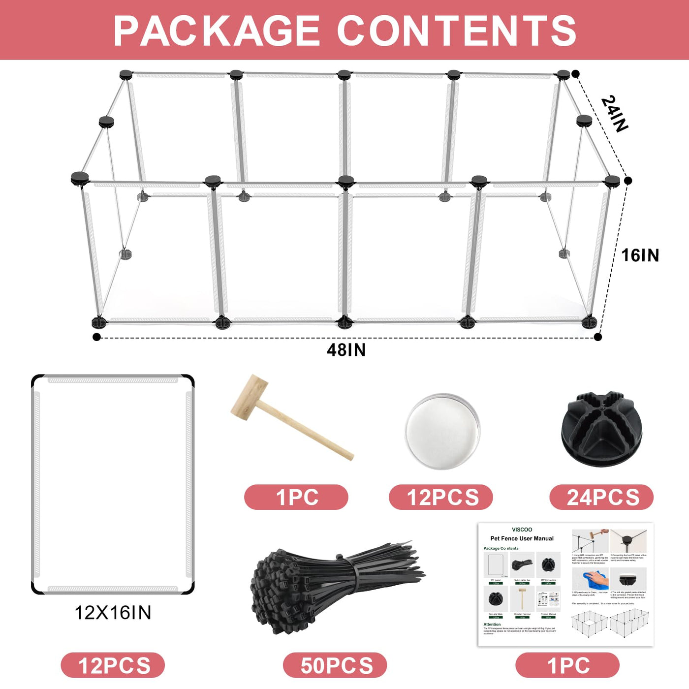 Viscoo 12 Panels Transparent Small Animals Playpen,48'' X 24'' X 16'' Portable Pet Playpen,Plastic Enclosure,Puppy Play Pen For