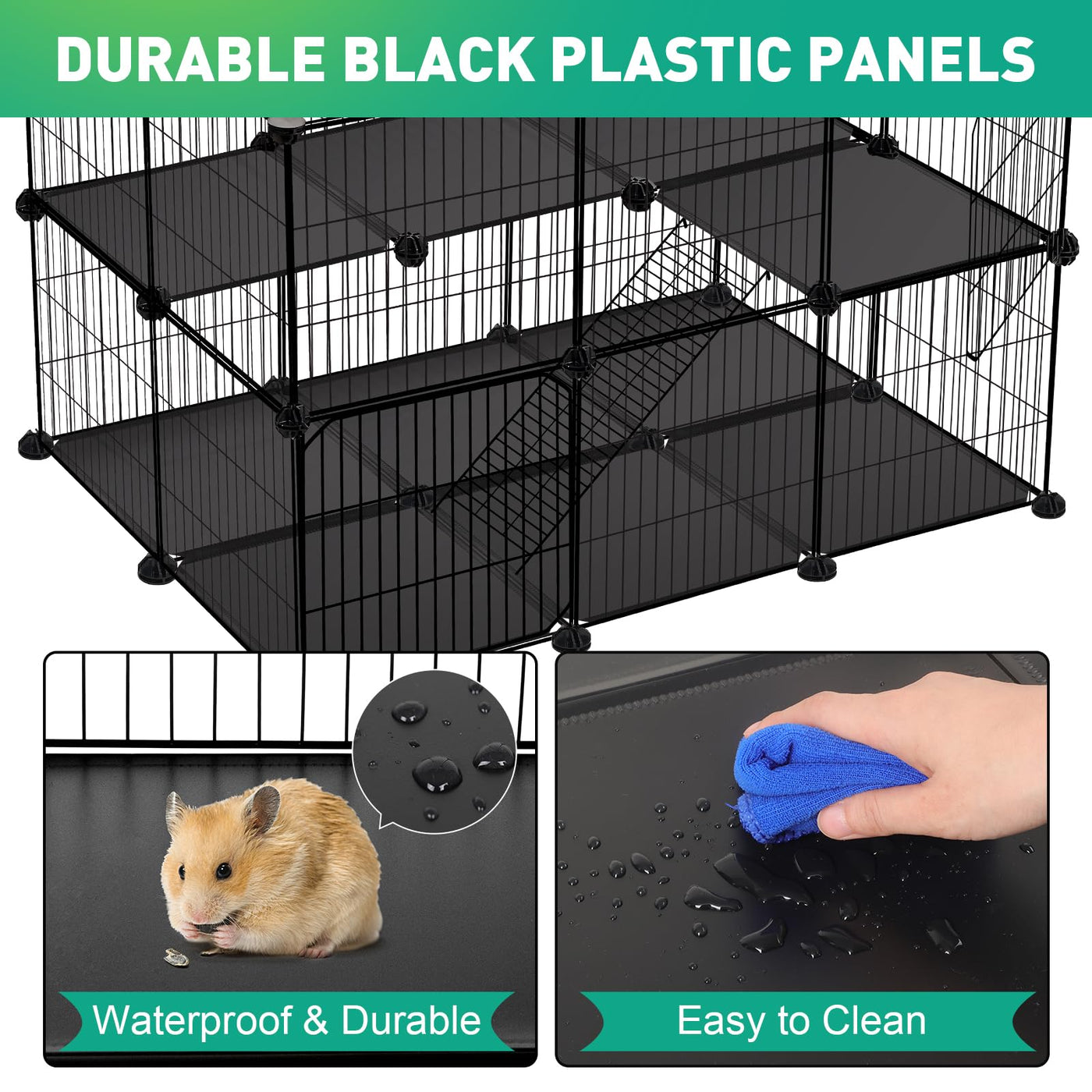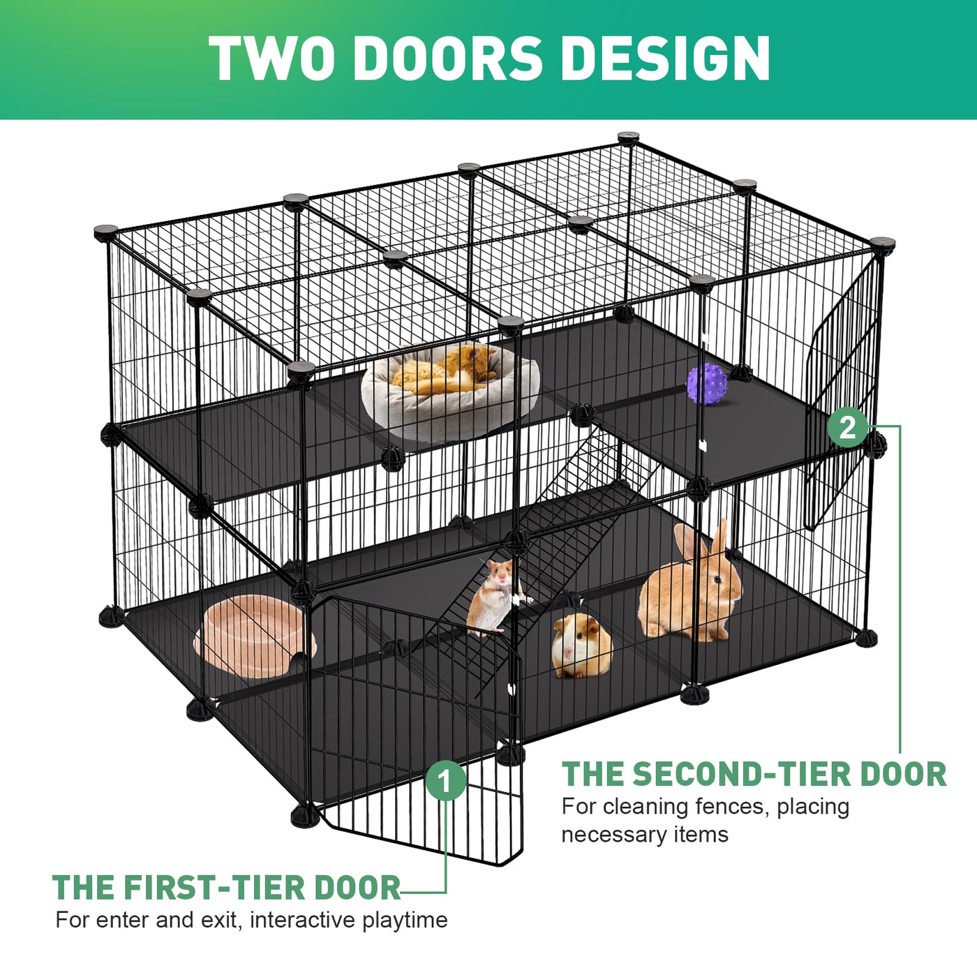 VISCOO 41 Panels Pet Playpen, Small Animal Playpen with 2 Doors, C&C Cage for Guinea Pigs, Rabbit, Bunny, Chicken, Hedgehogs, Pu