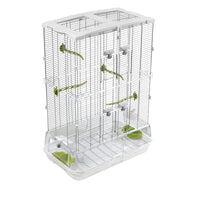 Q: What bird species is the Vision M02 Wire Bird Cage suitable for?A: The Vision M02 Wire Bird Cage is suitable for various small bird species including budgies, canaries, finches, parrotlets, and lineolated parakeets.