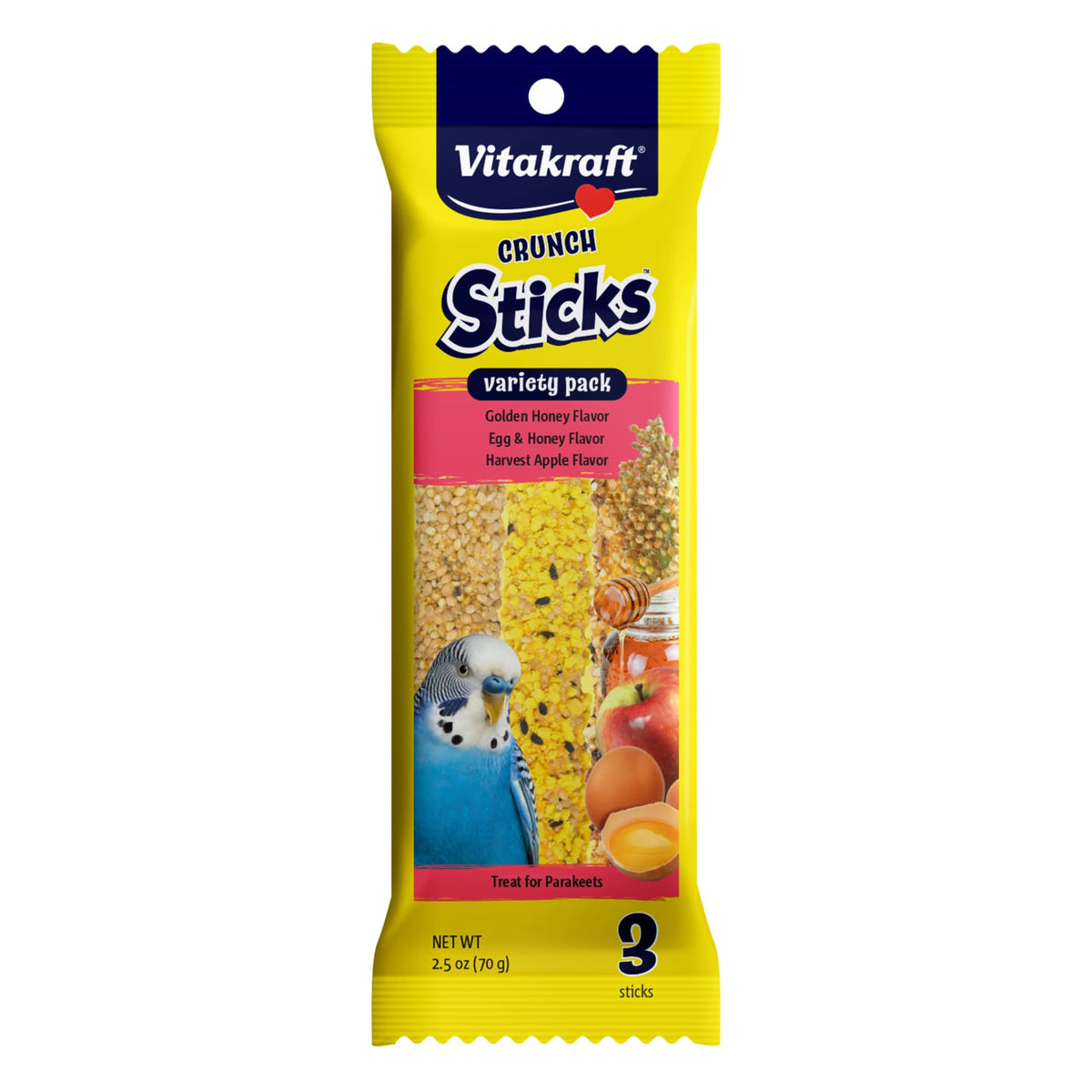 Vitakraft Crunch Sticks Parakeet Treat - Honey, Egg, and Apple- Pet Bird Treat Toy - Variety Pack, 2.5 oz