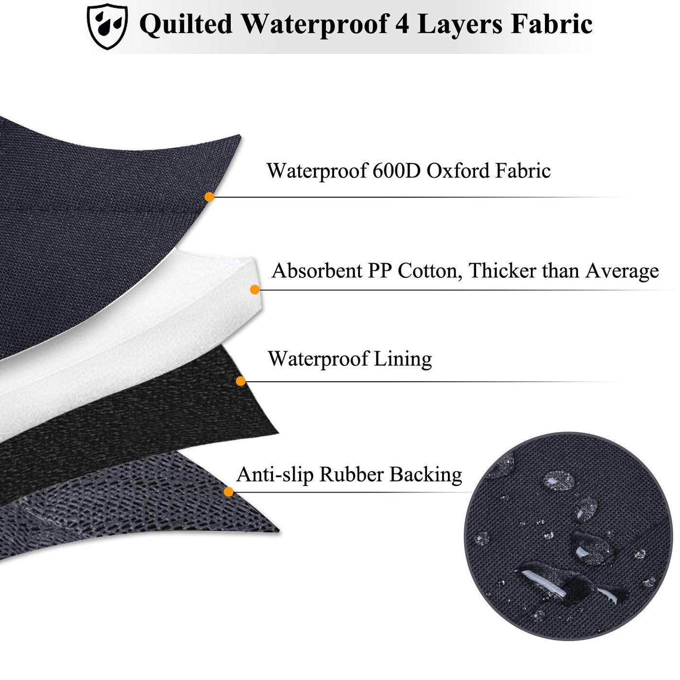 Features: Anti-slip: top straps with buckles, seat anchor keep the cover securely in place Waterproof: enhanced waterproof coating 4 layered fabric protects your car against liquid and spills Comfortable: quilted structure, thicker than average, makes the cover comfortable; happier than ever Safe: seat belt opening for you to harness dog and equip with seat belt; safer than ever