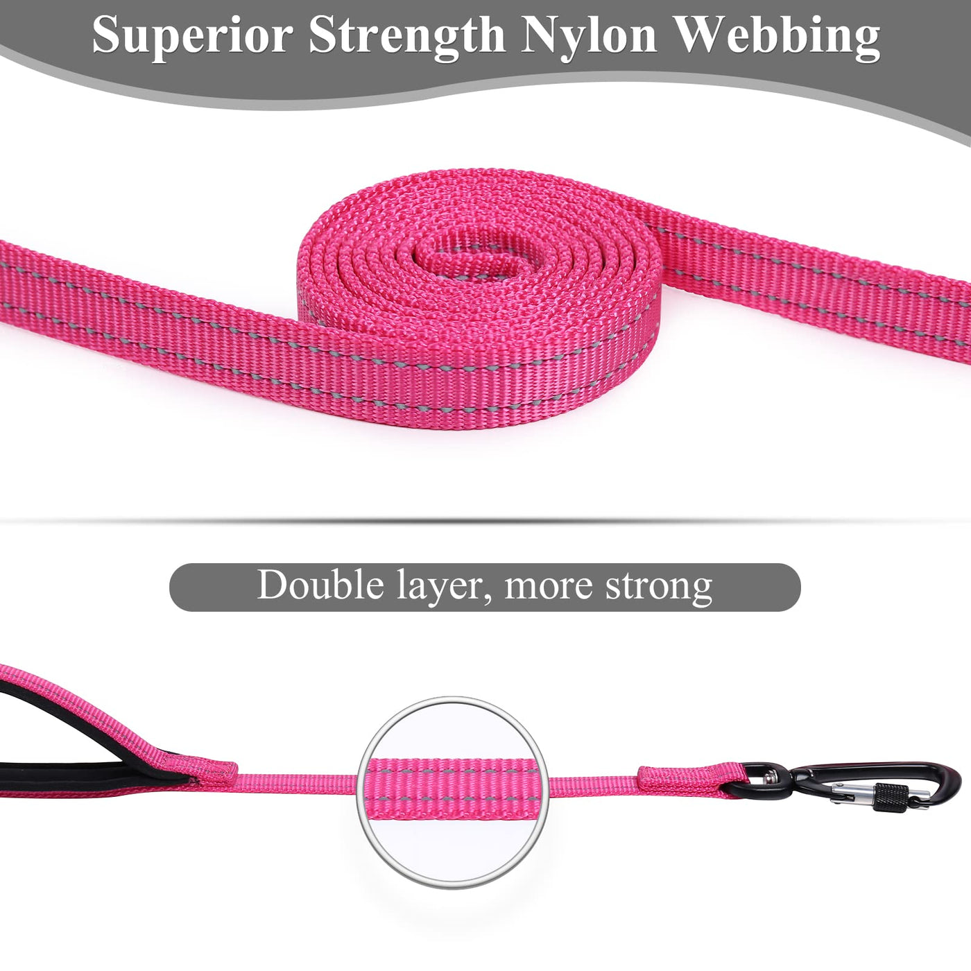 Vivaglory Dog Leash With Lightweight Aluminum Clasp & 2 Padded Handles, 4Ft Nylon Dog Leash Lead Heavy Duty Safety No Pull Climb