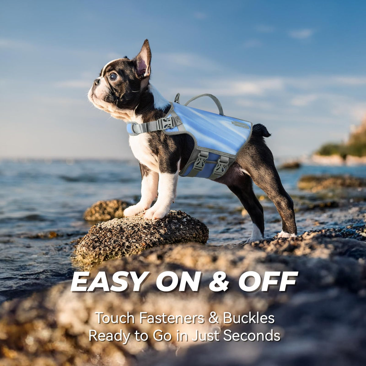 Vivaglory Neoprene Dog Life Jacket Dog Life Vest For Boating Hunting & Swimming, Lightweight With Leash Ring, L, Blue Wave