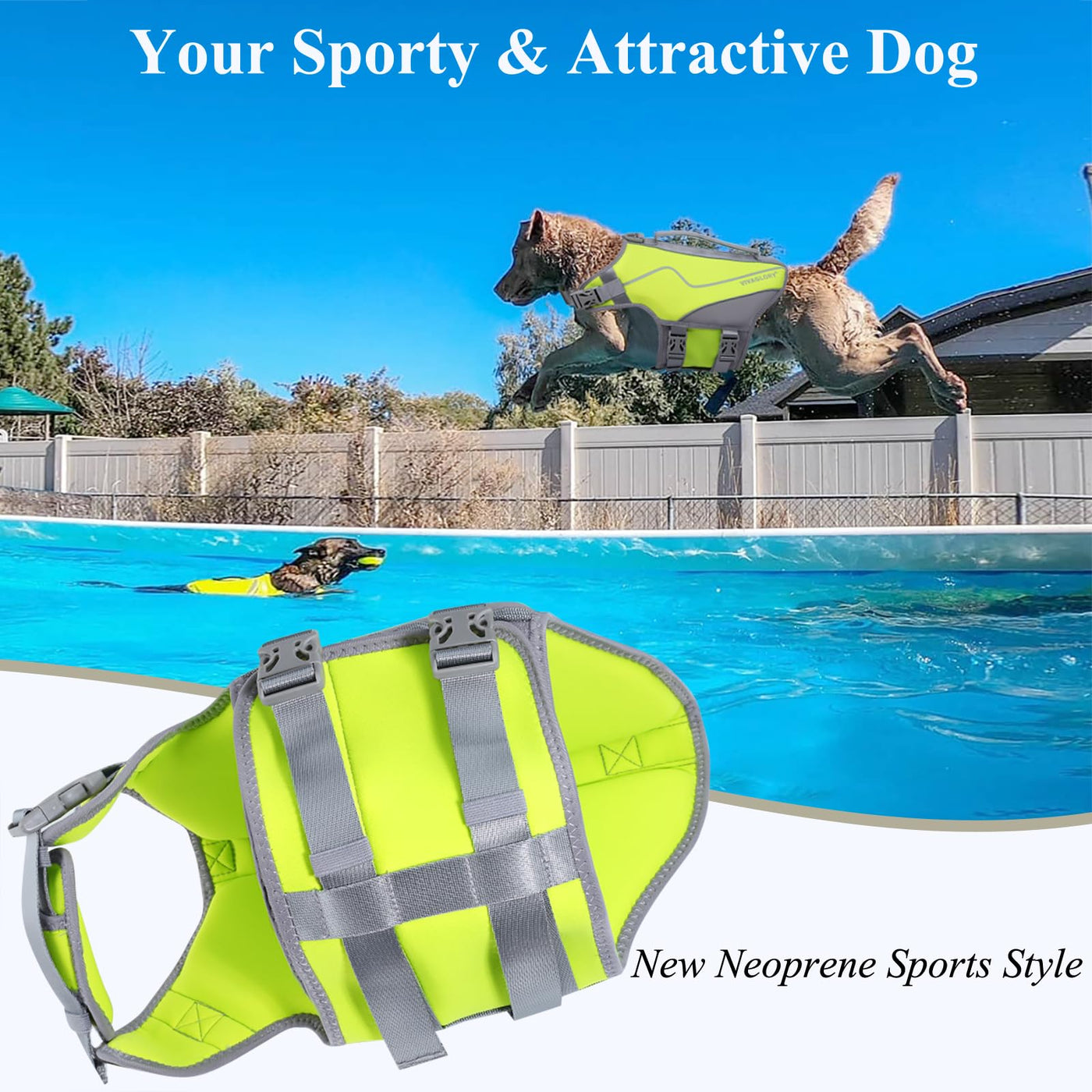 Vivaglory Neoprene Dog Life Jacket Dog Life Vest For Boating Hunting & Swimming, Lightweight With Leash Ring, M, Bright Yellow