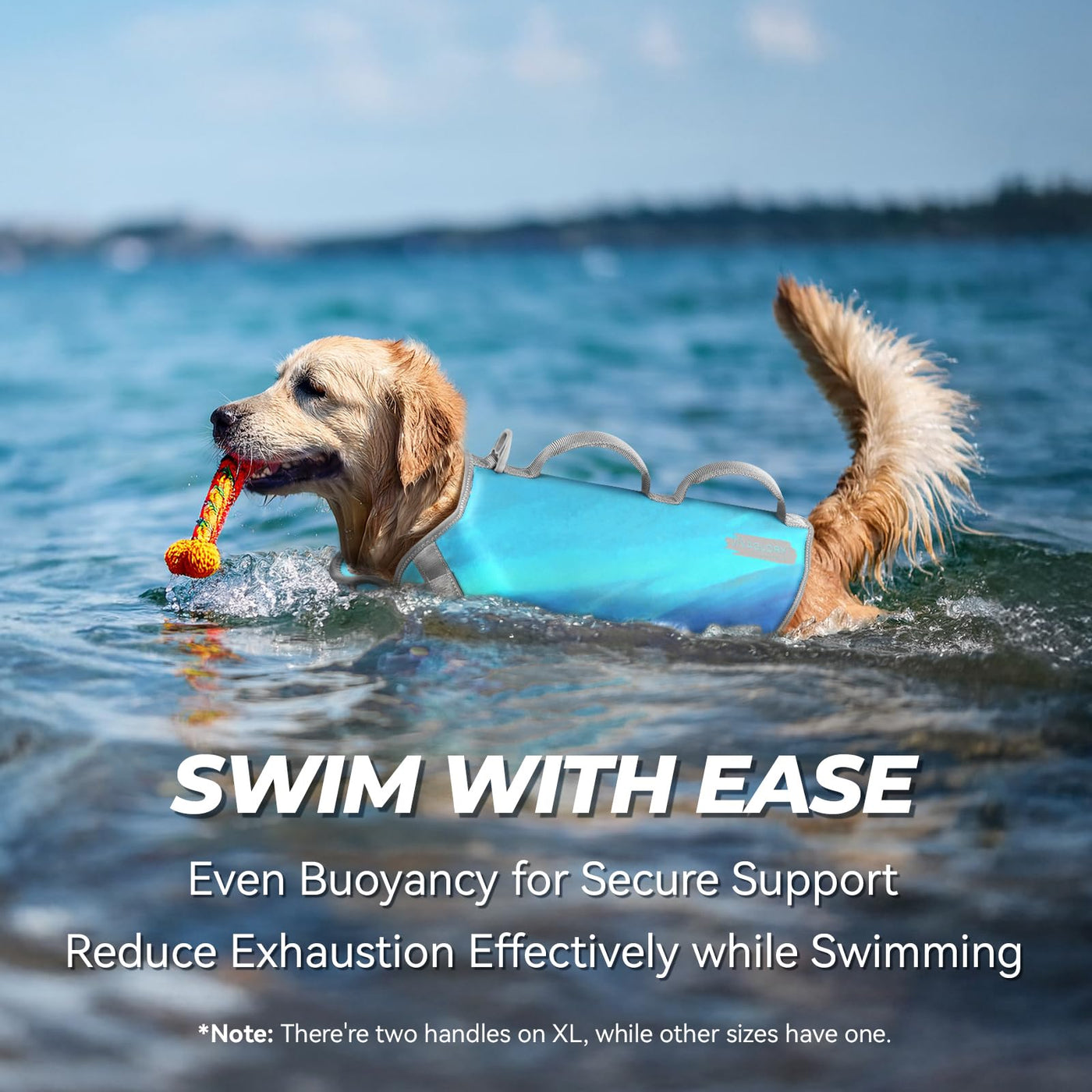 Vivaglory Neoprene Dog Life Jacket Dog Lifevest For Boating Hunting & Swimming, Lightweight With Leash Ring, S, Teal