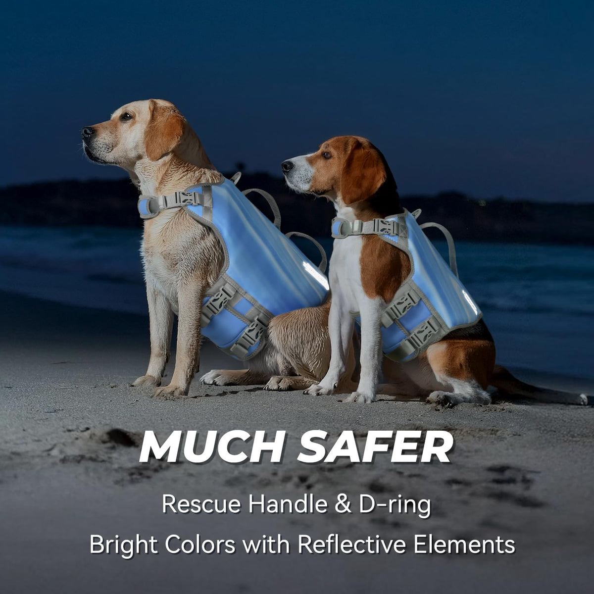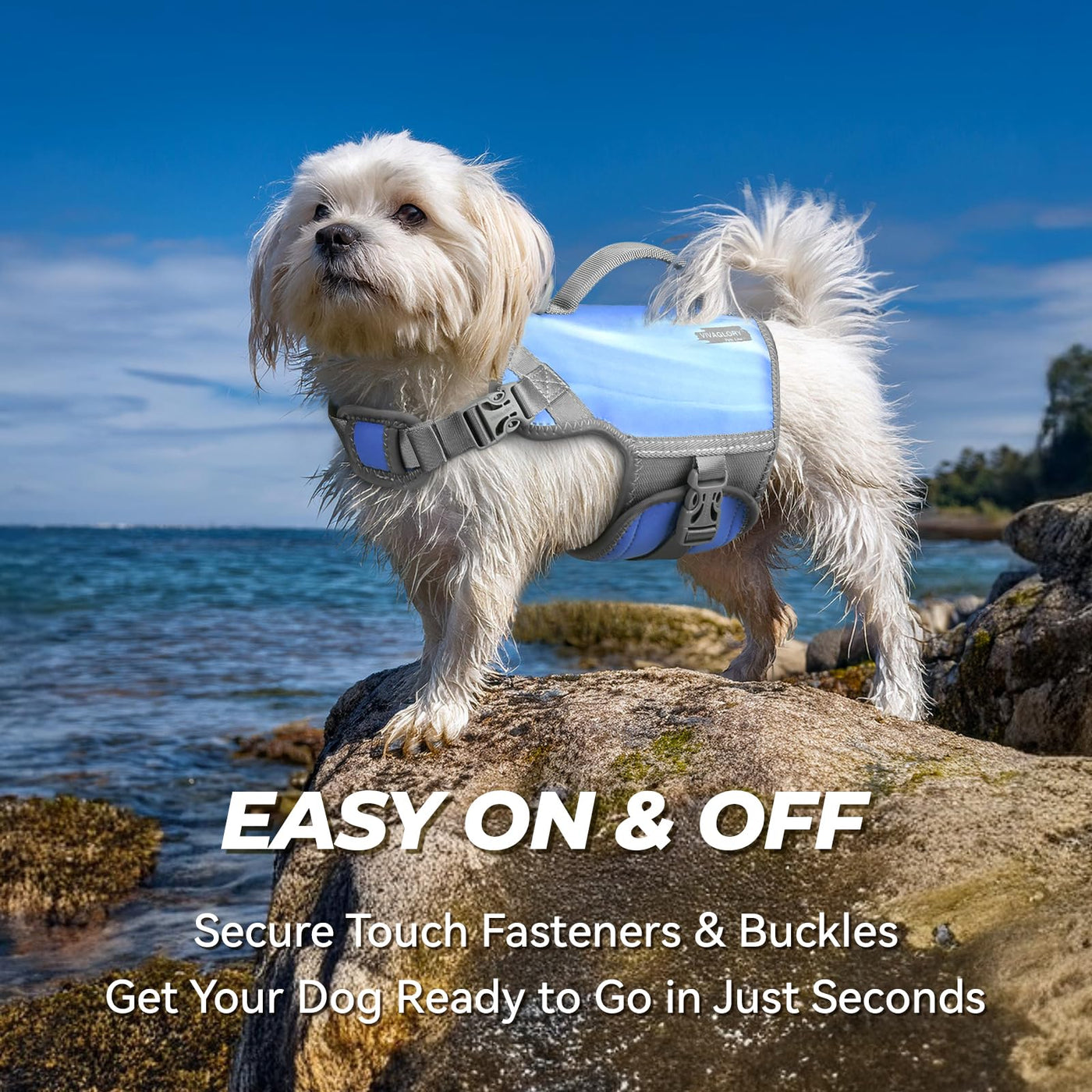 Vivaglory Neoprene Dog Life Jacket Puppy Life Jacket For Boating Hunting & Swimming, Lightweight With Leash Ring, Xs, Blue Wave