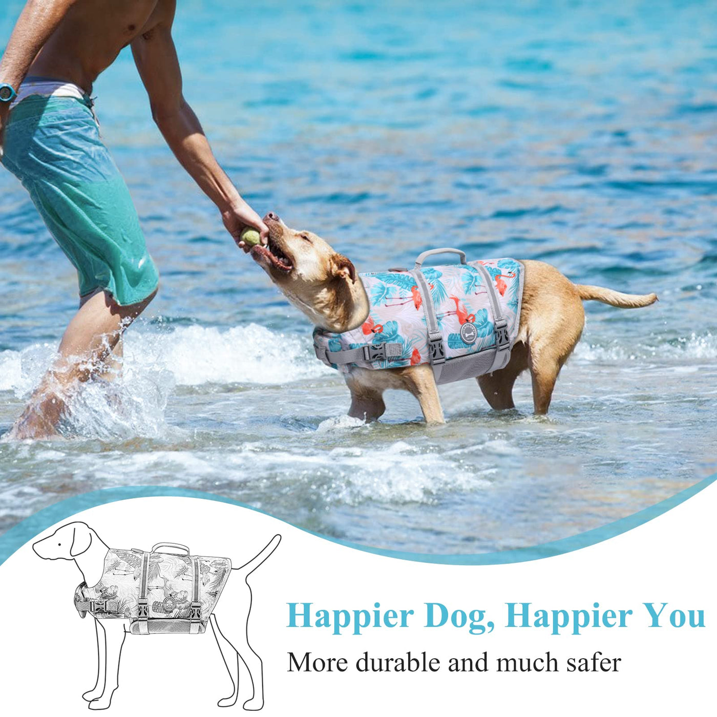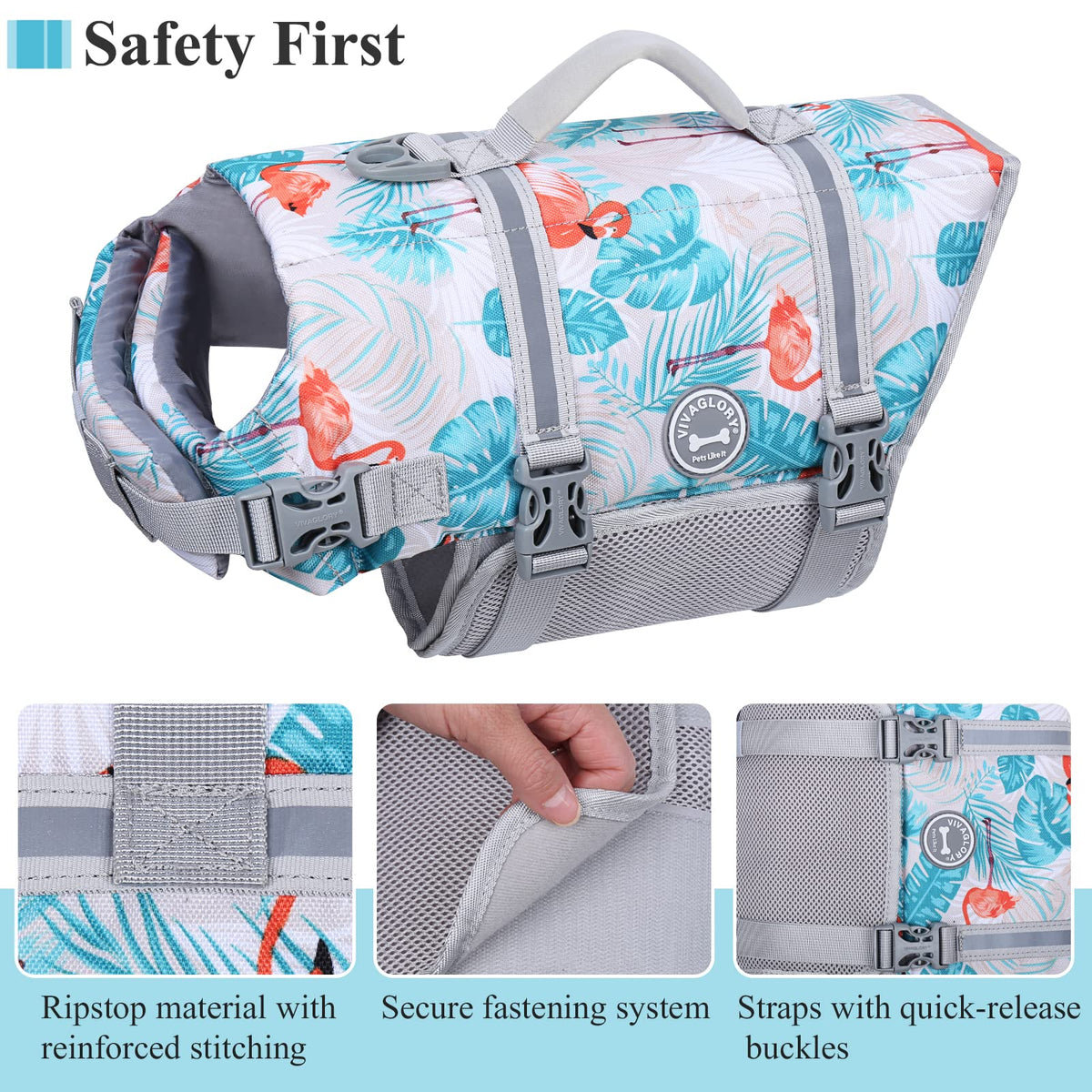 Vivaglory Ripstop Dog Life Jacket For Boating, Dog Swimming Vest Enhanced Visibility Safety And Buoyancy, Leaves Blue, Xs