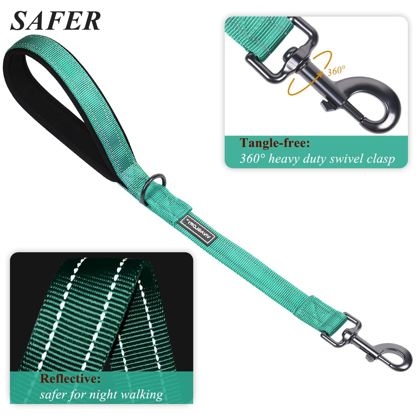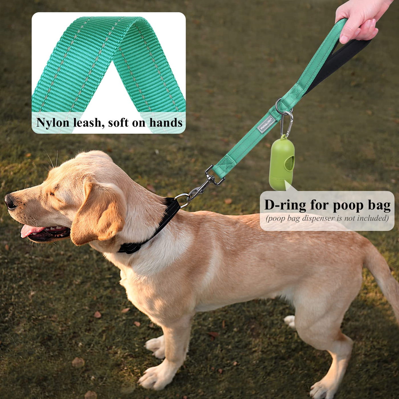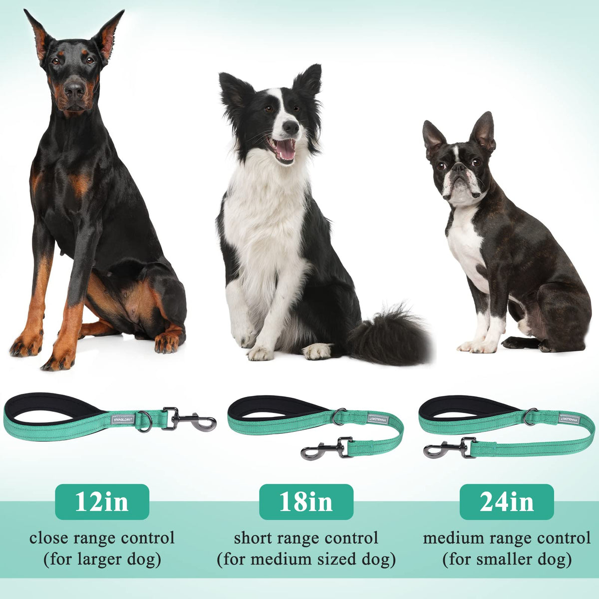 Vivaglory Short Dog Leash For Medium & Large Dogs, 18Inch, Green