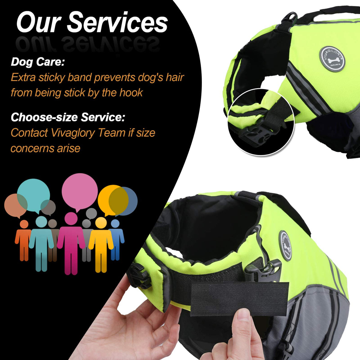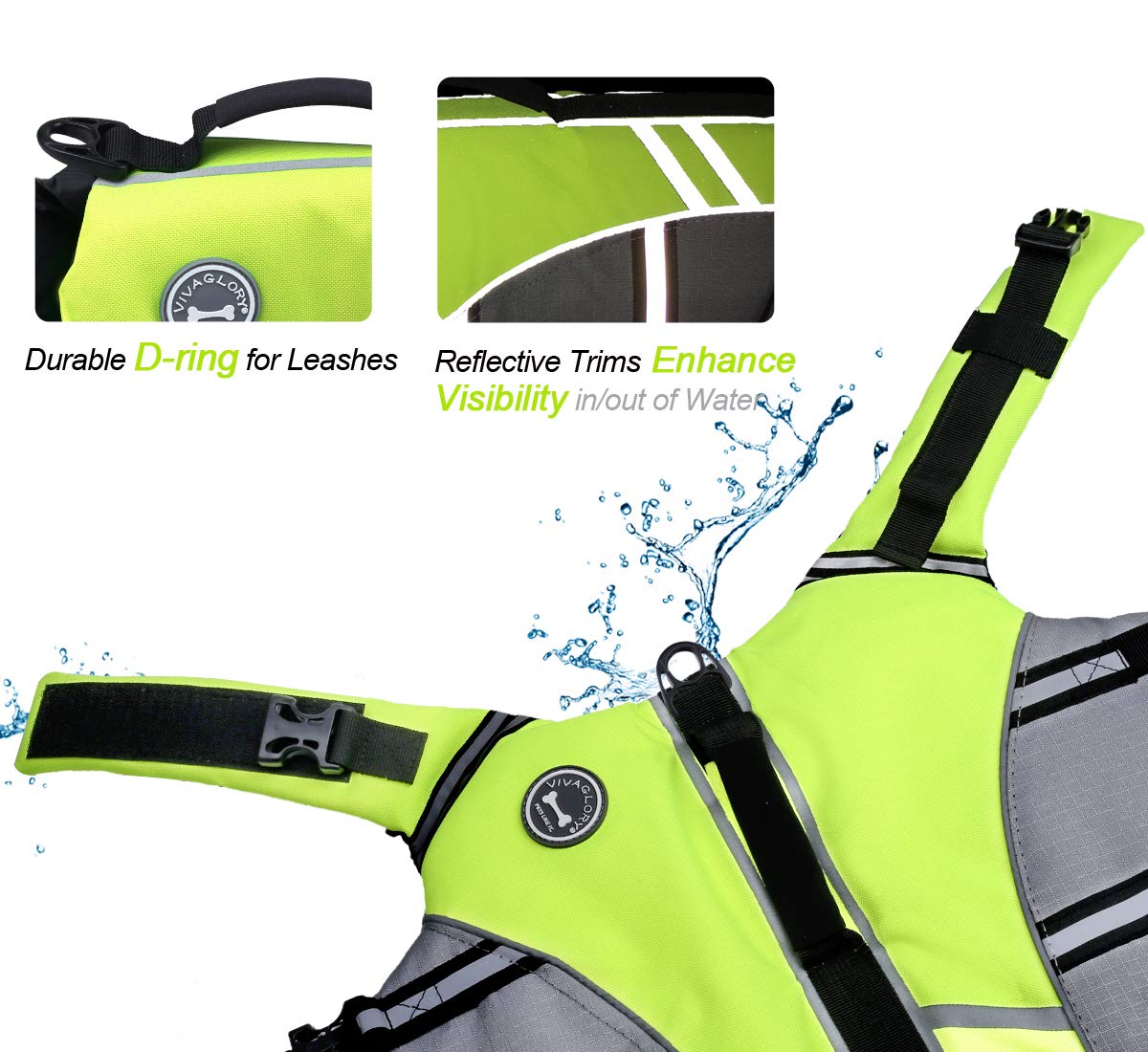 VIVAGLORY Sports Style Dog Life Jacket with Extra Flotation Adjustable & Durable Swim Vest with Secure Fastening System for Small Medium Large Pets