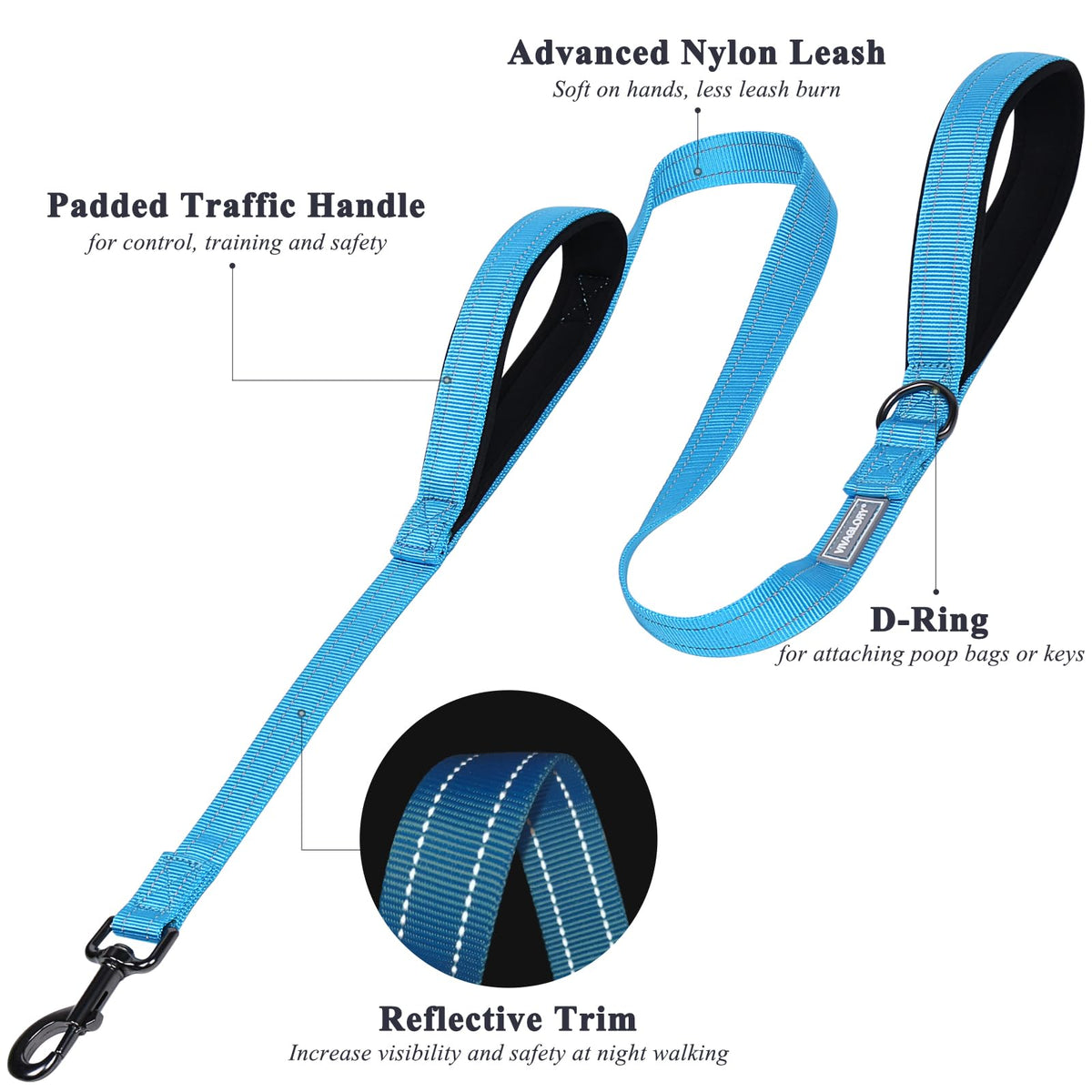 Vivaglory Traffic Handle Dog Leashes, Two Padded Soft Handles Strong Dog Leash, Reflective & Metal Hook Training Dog Lead, Lake