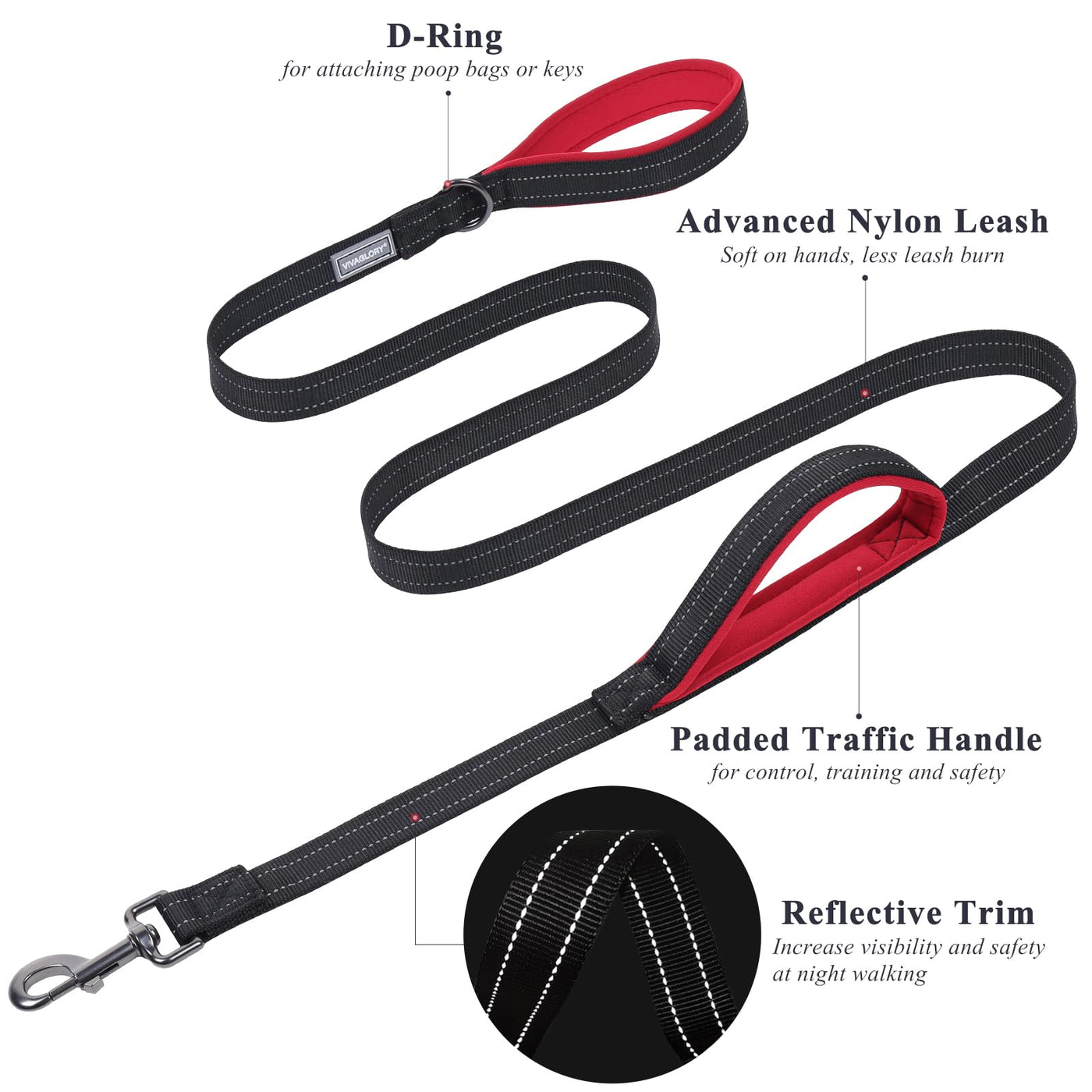 Vivaglory Traffic Handle Dog Leashes, Two Padded Soft Handles Strong Dog Leash, Reflective & Metal Hook Training Pet Lead, Black