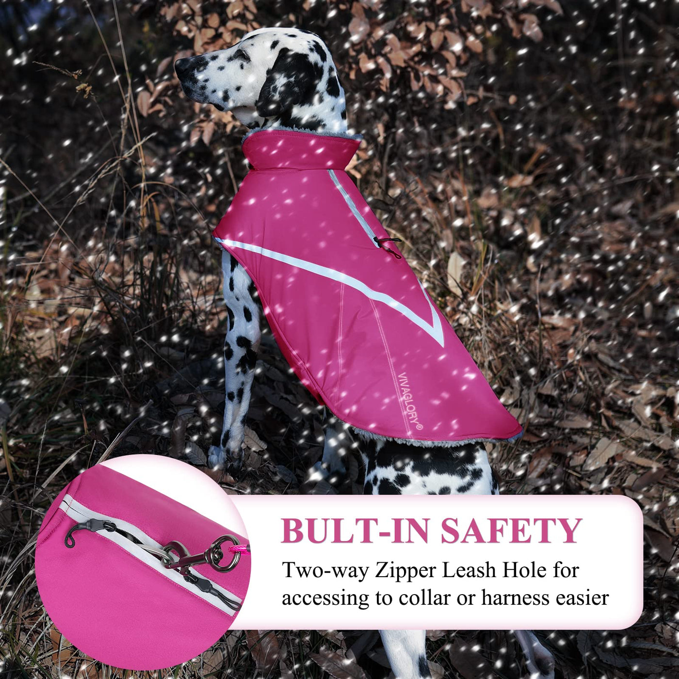 VIVAGLORY Warm winter jacket works for your pets. With a water-resistant Windproof outer layer, along with a high loft polyester wadding; warm plush fabric inner lining, this jacket keeps your dog warm and dry while letting their skin breathe a bit as well. Add it to your pets cold-weather wardrobe for an extra touch of timeless style. Features: 6 size available: VIVAGLORY dog coat comes in 6 sizes for small to large dogs, also 6 colors option Water-repellent & Windproof: features a protective, water- repellent shell on outer layer, keep your dog warm and dry Keep Warmth:High loft polyester wadding; warm plush fabric inner lining helps preserve warmth when the temperature drops Easy on & off: HOOK & LOOP closure around the neck and chest, easy to put on and take off. 2-way zippered leash hole: Built-in leash hole so you can attach to a collar or harness leash easily Thoughtful design: zipper with a built-in self-lock and a strip inside, no worry about the zipper sliding uncontrolled and avoid hurting dog hair Stylish: Athletic cut give your dog a new look without inhibiting their movement Reflective: Reflective trim ensure your pet visible when light hits at night Easy to clean: Machine wash in cold water, gentle cycle Use mild detergent Hang to dry Do not bleach, iron, or dry clean Guarantee: VIVAGLORY guarantees against defects in materials and workmanship for 365 days; chew or abuse excluded If you experience a problem with our dog seat cover, please contact VIVAGLORY team for professional help