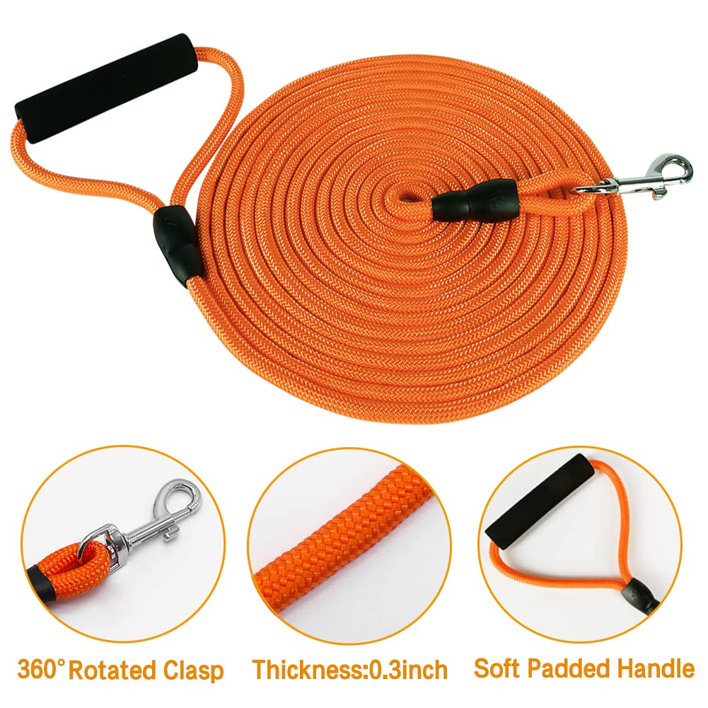 Vivifying Dog Training Leash, 20Ft Floating Dog Check Cord, Long Dog Rope Leash With Comfortable Handle For Outside, Hiking, Swi