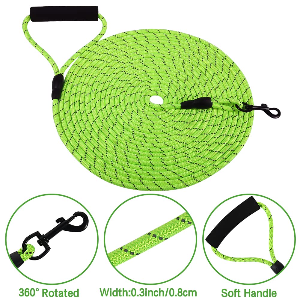 Vivifying Floating Long Dog Leash, 32Ft Dog Training Leash For Swimming And Lake, Reflective Long Rope Lead With Soft Handle For Outside, Yard, Camping, Hiking And Beach (Green)