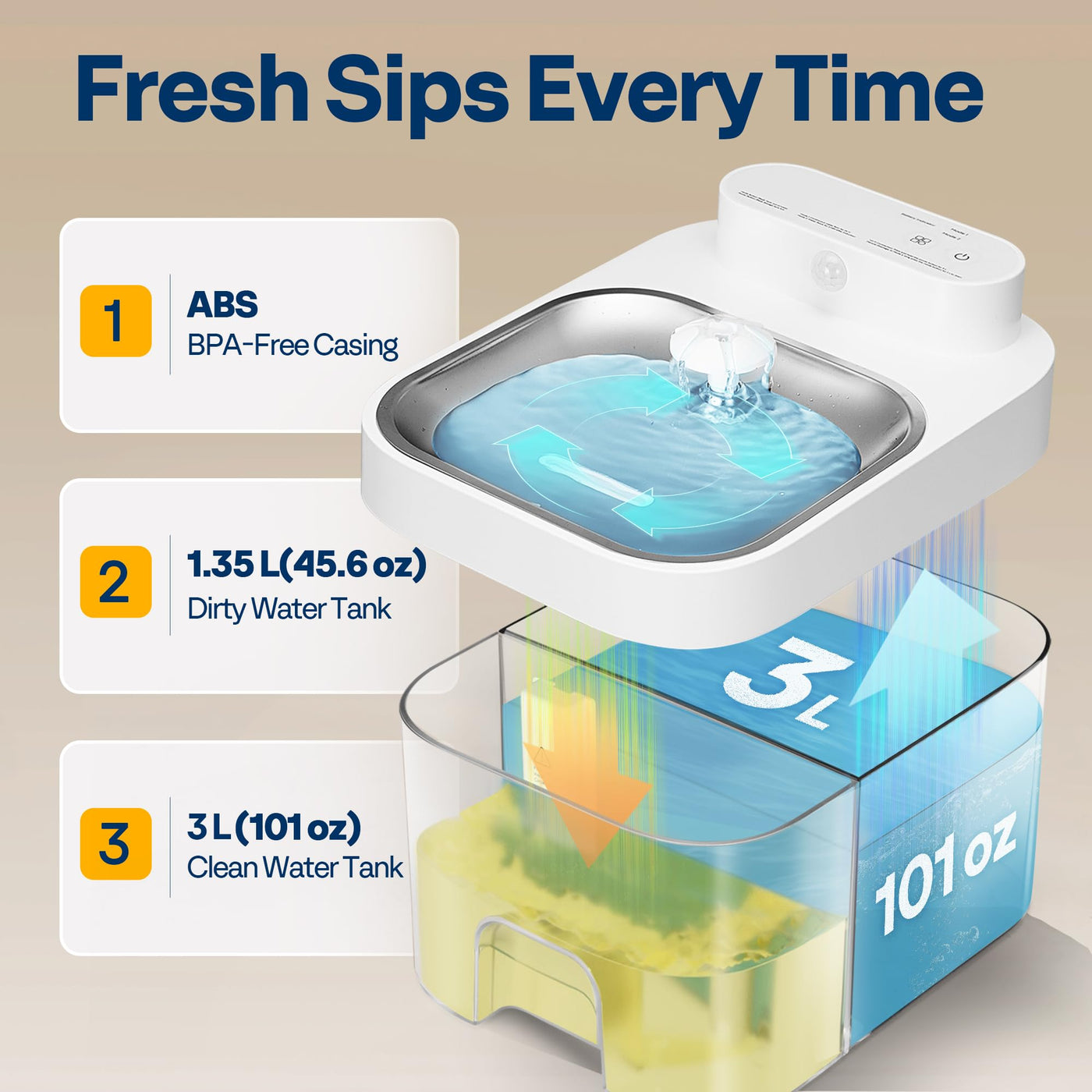 Vivohome Smart Pet Water Fountain, 101Oz Separated Fresh Water Tank, No Fliter Needed & Wireless Pump, Battery Operated Super Cl