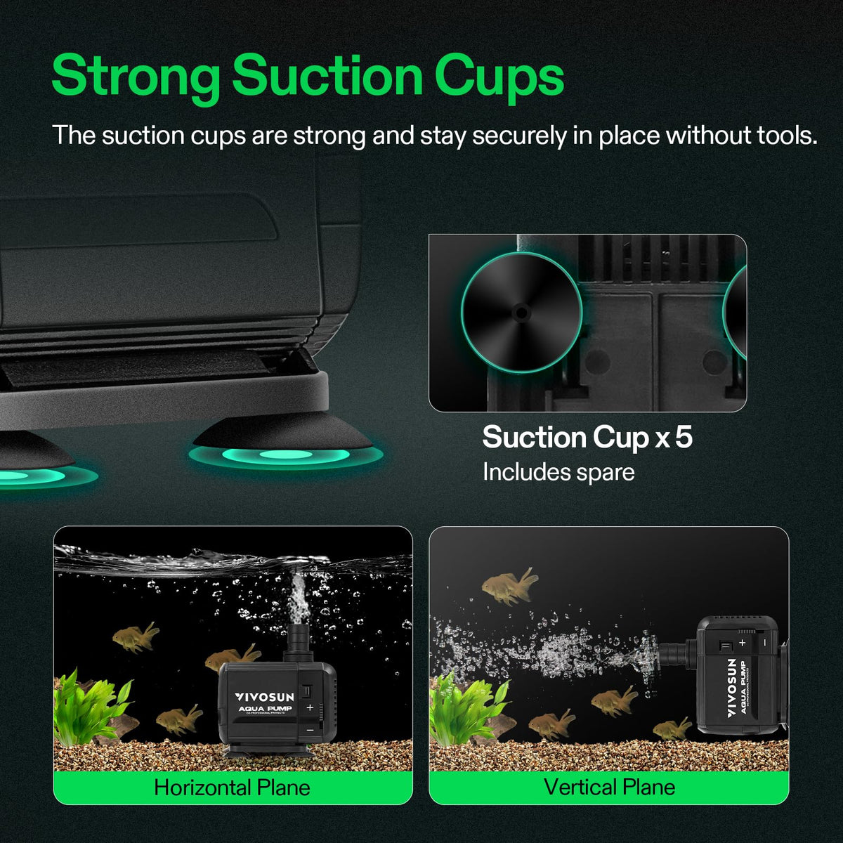Q: Is the VIVOSUN Submersible Pump easy to clean and maintain?A: Yes, the VIVOSUN Submersible Pump is designed to be detachable and cleanable without the need for additional tools, making maintenance straightforward.