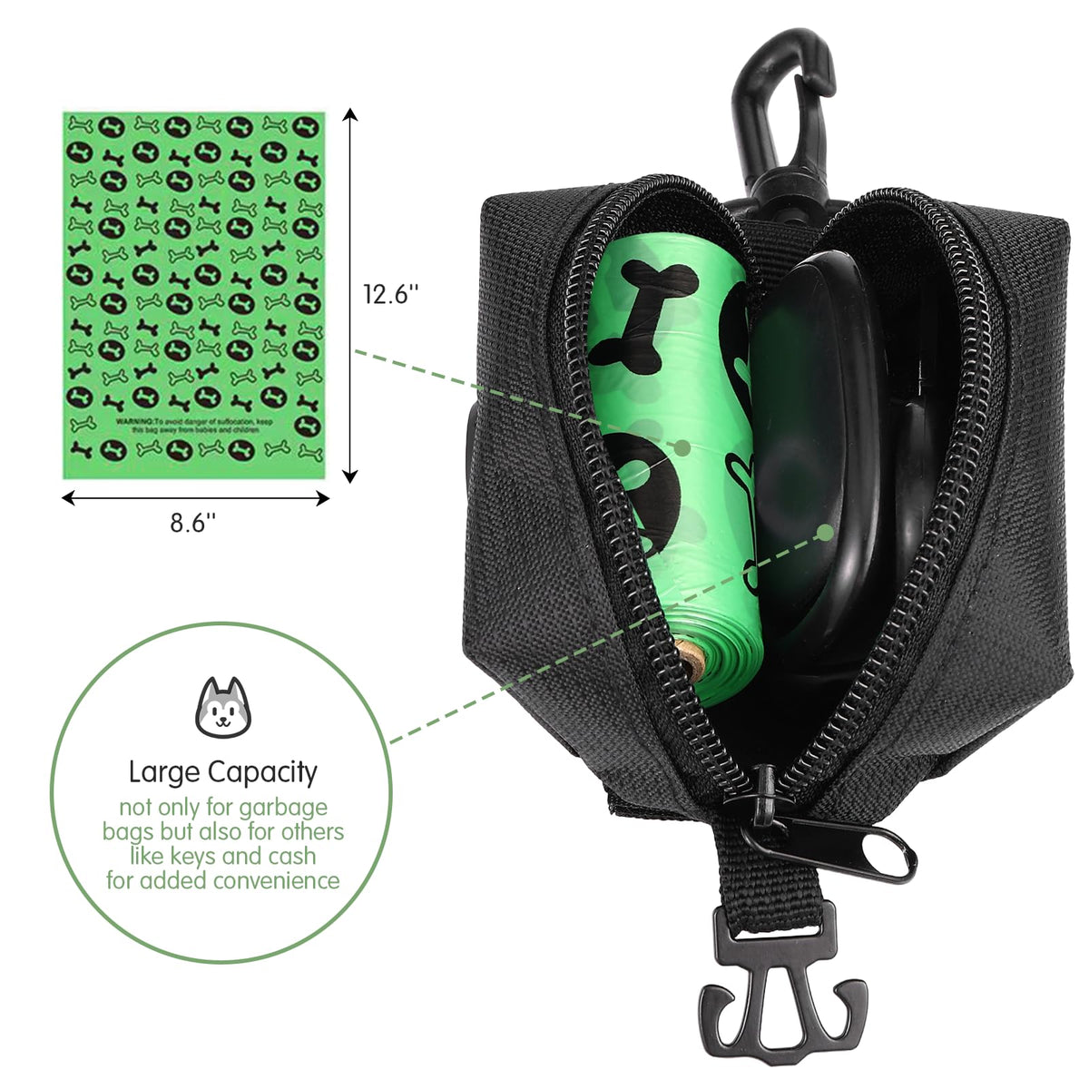 Viwik Dog Poop Bag Holder For Leash, Waste Bag Dispenser With Pet Trash Bags And Carabiner Clip, Soft Portable Doggie Poop Bag D