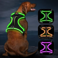 Q: How does the Vizbrite Light Up Dog Harness improve my dog's visibility at night?A: The Vizbrite Light Up Dog Harness features built-in LED lights that provide high visibility in low light conditions. This ensures that your dog is easily spotted during night walks, keeping them safe from potential hazards like cars and bicycles.