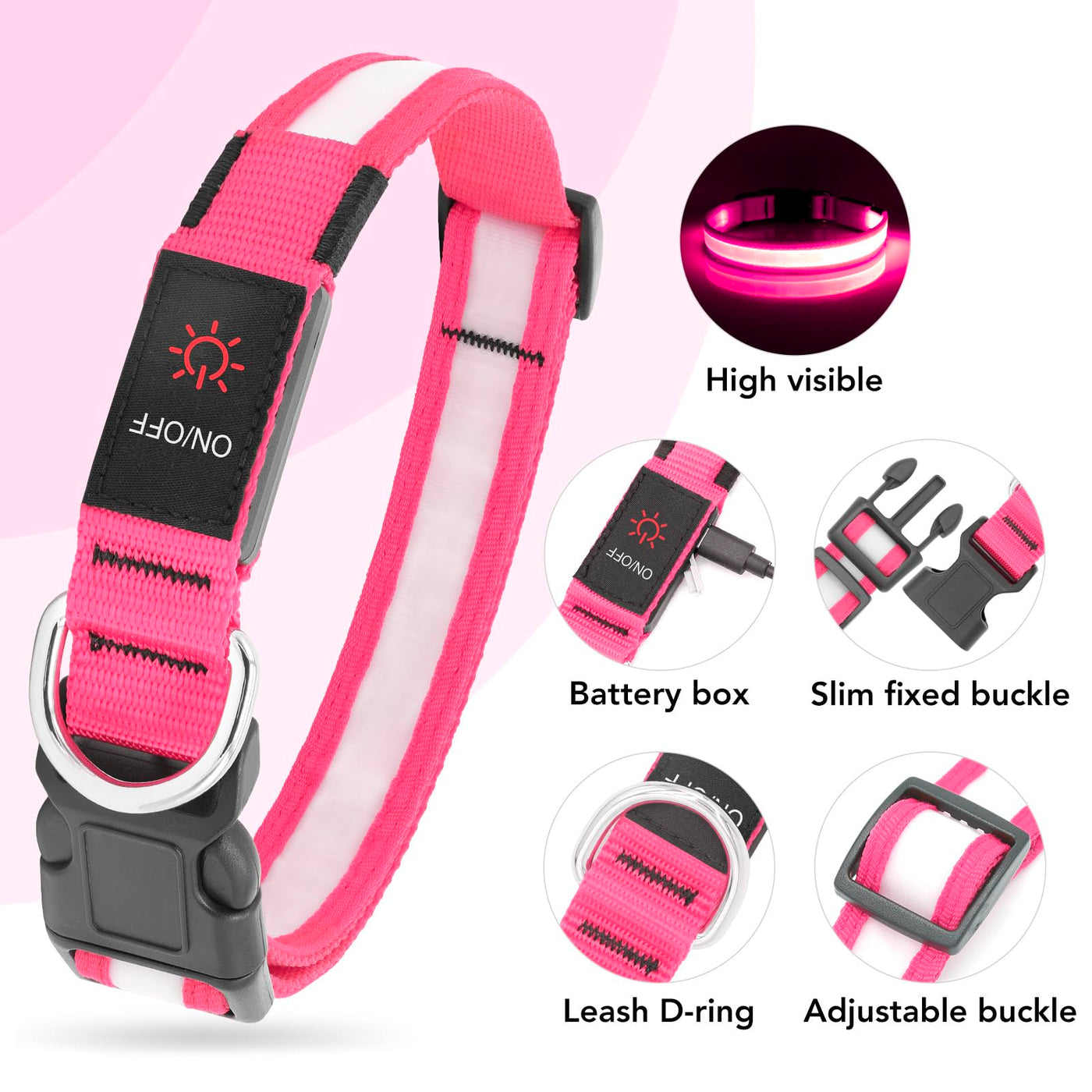 Vizpet Led Dog Collar, Light Up Dog Collar Adjustable Usb Rechargeable Super Bright Safety Light Glowing Collars For Dogs (Large, Pink)