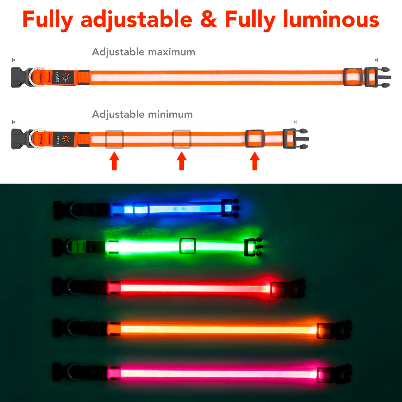 Vizpet Led Dog Collar, Light Up Dog Collar Adjustable Usb Rechargeable Super Bright Safety Light Glowing Collars For Small Dogs(Small,Orange)