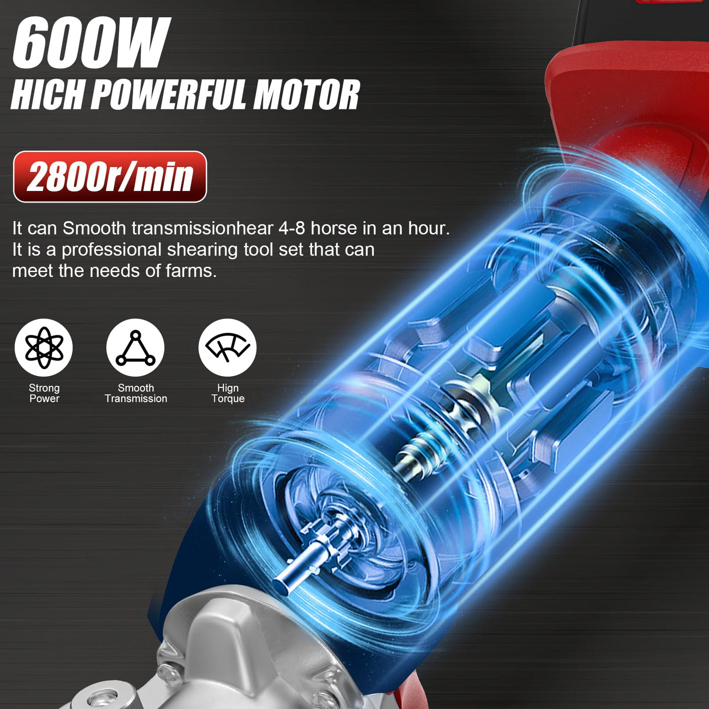 Grooming Tips: Make Sure To Give Them A Good Bath And Dry Their Coats Thoroughly. Check For Any Cuts Or Bumps On Their Skin Before You Start. When You'Re Clipping Their Fur, Remember To Pull The Skin Tight To Get A Nice Smooth Finish. And Don'T Forget To Oil The Blade Before And During Grooming To Keep It Working Well. Just A Heads-Up Though, The Package Doesn'T Include Any Oil, So You'Ll Need To Get Some Separately. Happy Grooming! Specifications: Power: 110V Watts: 600W Rpm: 2800 Noise: 78 Db Weight: 2.9 Lbs. Color: Black & Red Dimension: 14'' (L) X 3.4'' (W) Package Includes: 1 X Cordless Electric Horse Clipper 2 X 3000Mah Batteries And Charger 1 X Cleaning Brush 1 X Oil Bottle 1 X Clipper With Head And Blade 1 X Durable Carriage Case 1 X Operating Manual Please Note: This Clipper Isn'T Really Meant For Small Critters Like Dogs. But It'S Great For Big Dogs Or Animals With Super Thick Fur. To Keep Things Running Smoothly, Grab Some Blade Lube Oil (Just A Heads-Up, It'S Not Included) And Cooling Spray. And Remember, Take It Easy - Give The Clipper A Breather Every Now And Then To Prevent Overheating.