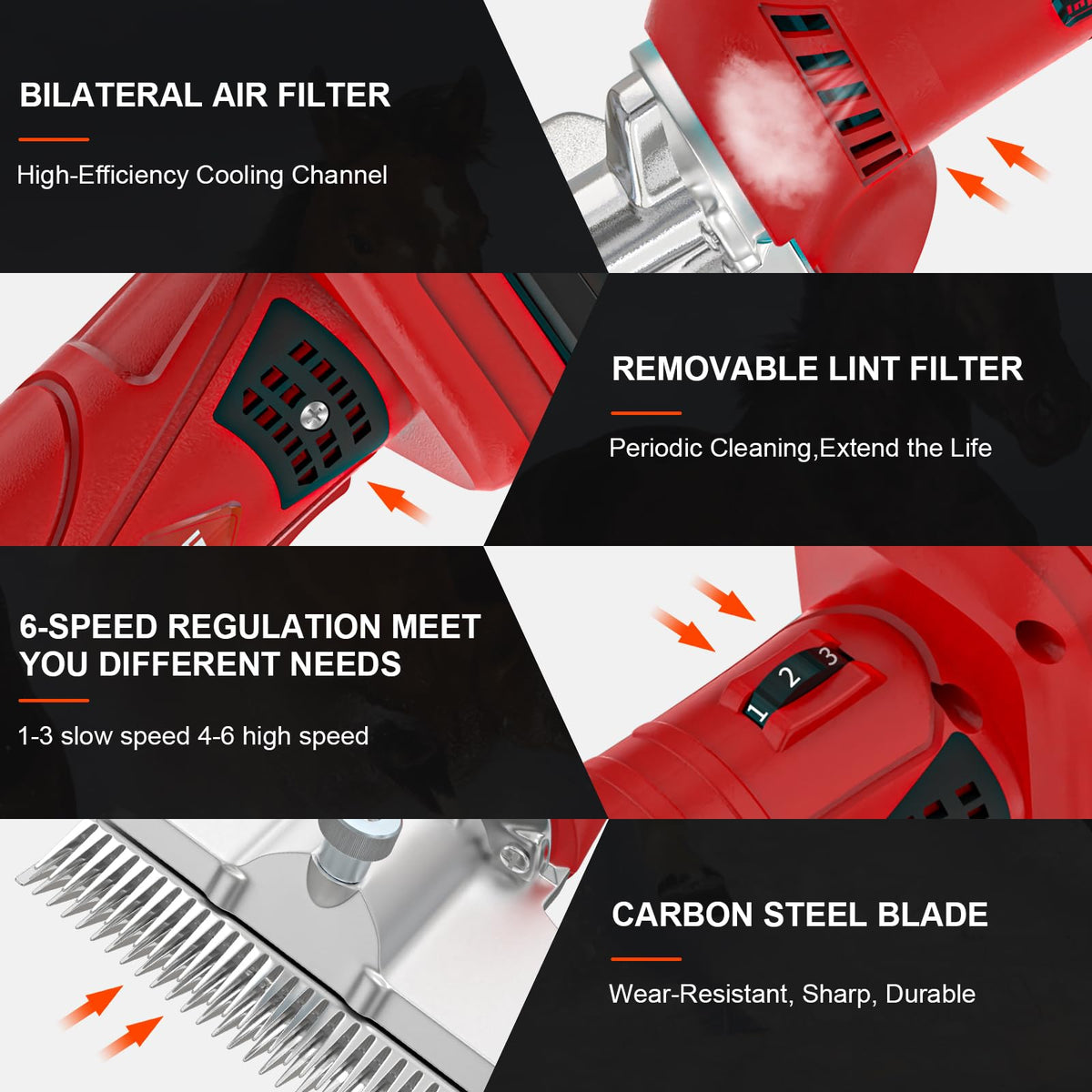 Vkdemer Cordless Horse Clippers,500W Heavy Duty Horse Grooming Clippers With 2 Pcs Rechargeable 3000Mah Lithium Battery,6 Speed