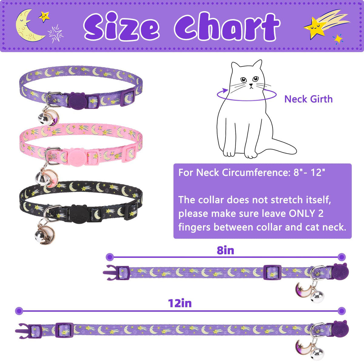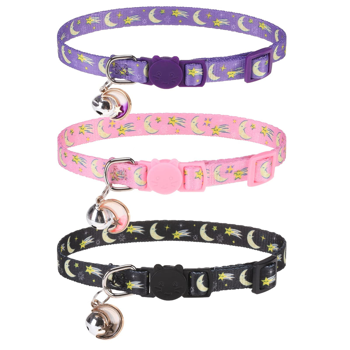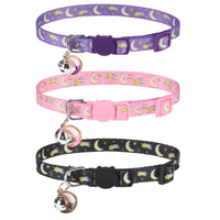 Vkpetfr Breakaway Cat Collars With Bell & Cute Pendants, 3 Pack Safety Buckle Kitten Collars, Adjustable Pet Collar Ideal For Girl Boy Cats Puppy (Moon&Star)
