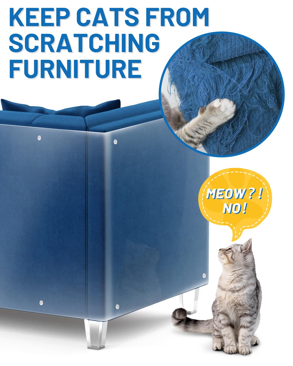 Protect your furniture from cat scratches with this clear, self-adhesive furniture protector. Measuring 118 inches by 7.9 inches, this transparent shield offers comprehensive protection for your sofa corners, walls, and doors from persistent feline scratching. The kit includes 30 twist pins for secure installation, ensuring the protective barrier stays firmly in place. This scratch deterrent is virtually invisible once applied, maintaining your furnitures aesthetic appeal while providing effective protection. The generous length allows you to cover multiple areas or cut to size for custom applications. Easy to install and durable, this protective guard helps preserve your valuable furniture without compromising on style. Perfect for cat owners who want to maintain both their furnitures condition and their pets happiness.