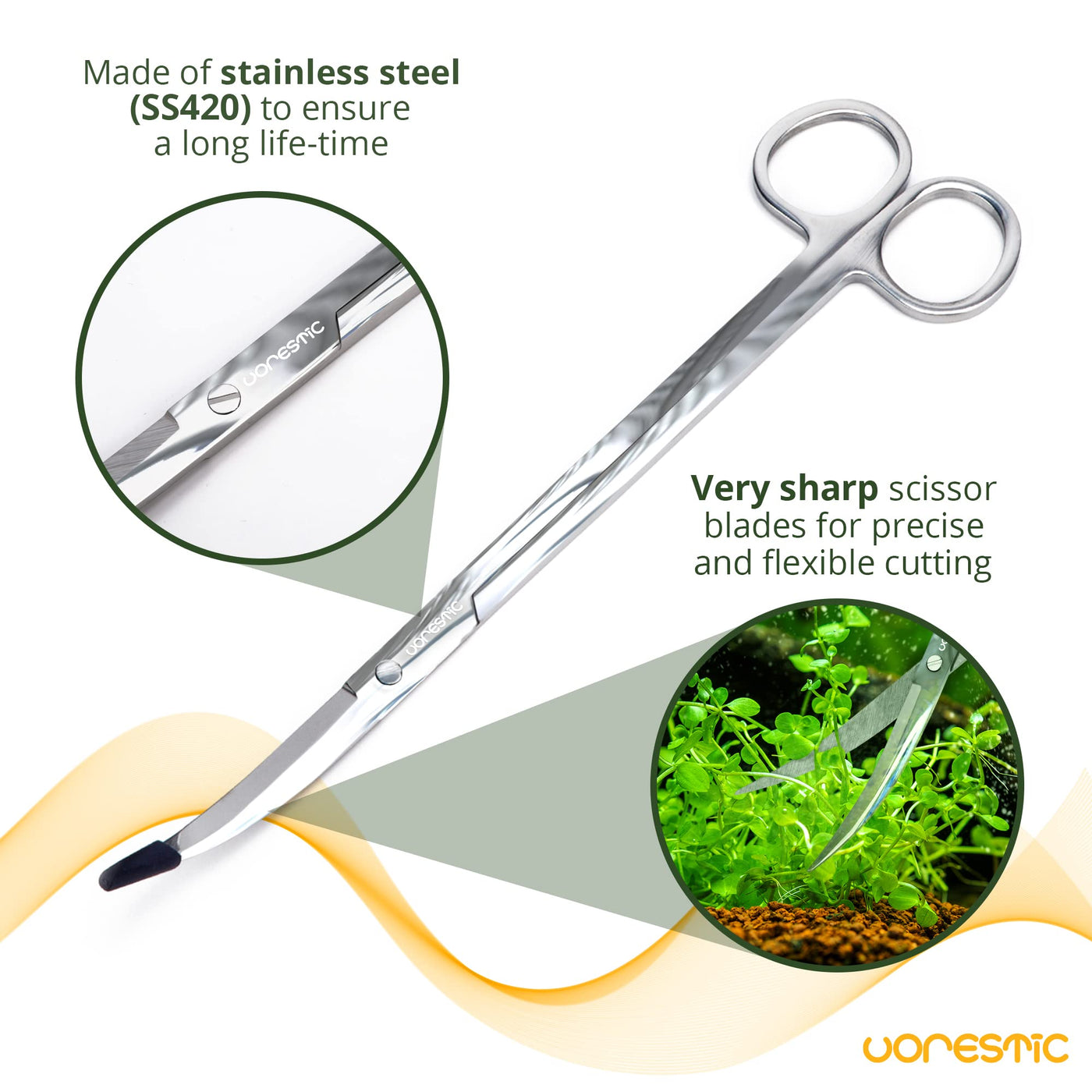 VORESTIC Gebogene Aquarium Schere 25cm - 1 Stck - Edelstahl - S?- und Meerwasser - Aquarium Pflanzenschere, Terrarium Zubeh?r, A