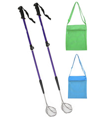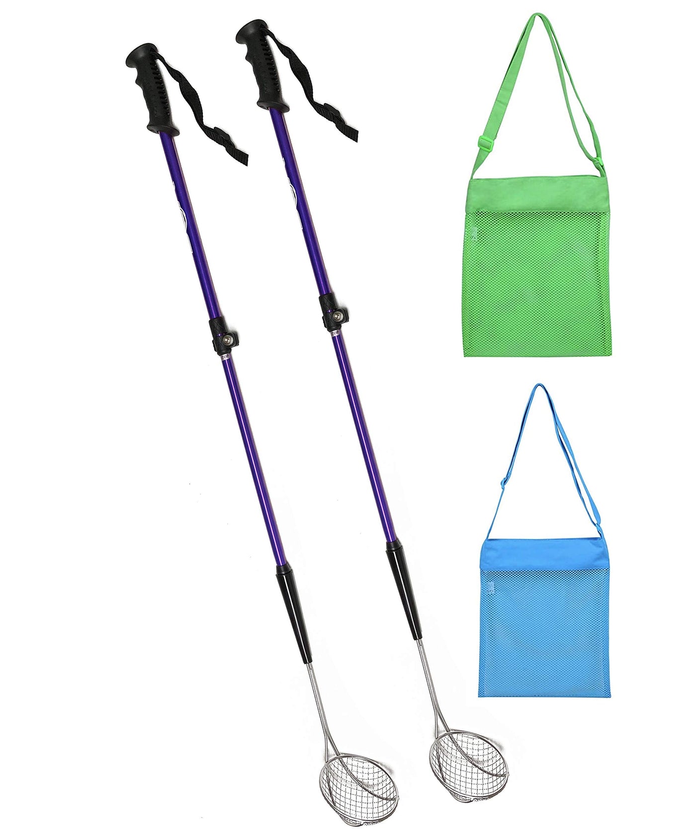 Vos Beach Multifunction Sand Sifter (Blue, 2 Pack With 2 Shell Bags), Extra Long Adjustable Handle, Shell Scoop, Sand Scoop, Bac