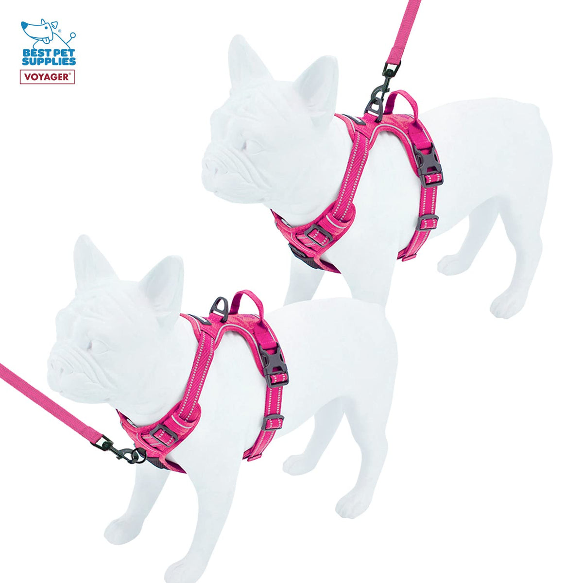 Voyager Dog Harness Dual Leash Attachment No-Pull Control Adjustable Soft But Strong Pet Harness For Medium And Large Dogs With 3M Reflective Technology - Harness Leash Set (Fuchsia), Xl