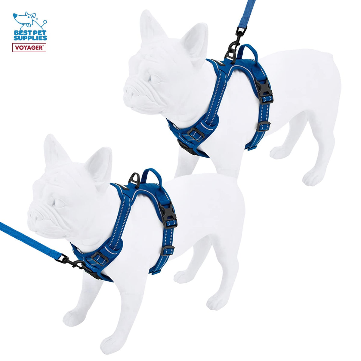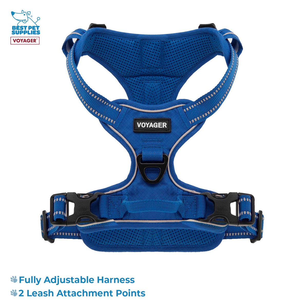 Voyager Dog Harness Dual Leash Attachment No-Pull Control Adjustable Soft But Strong Pet Harness For Medium And Large Dogs With 3M Reflective Technology - Harness Leash Set (Royal Blue Lattice), Xs