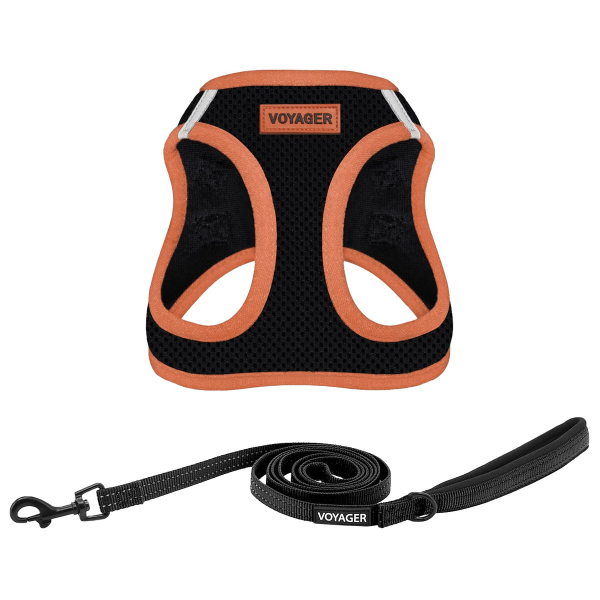 Voyager Step-In Air All Weather Mesh Harness And Reflective Dog 5 Ft Leash Combo With Neoprene Handle, For Small, Medium And Large Breed Puppies By Best Pet Supplies - Black, Medium