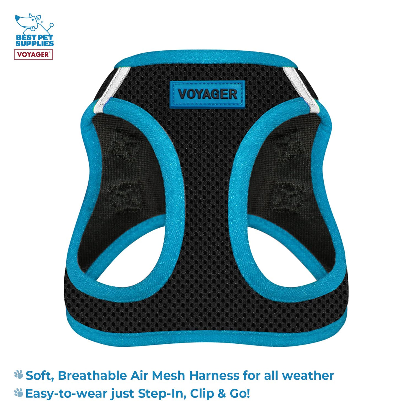 Voyager Step-In Air All Weather Mesh Harness And Reflective Dog 5 Ft Leash Combo With Neoprene Handle, For Small, Medium And Large Breed Puppies By Best Pet Supplies - Blue, X-Large