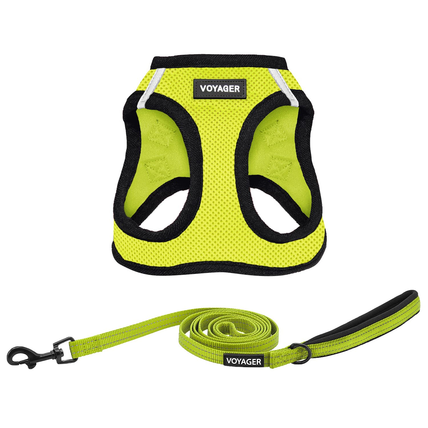 Voyager Step-In Air All Weather Mesh Harness And Reflective Dog 5 Ft Leash Combo With Neoprene Handle, For Small, Medium And Large Breed Puppies By Best Pet Supplies - Green, Medium