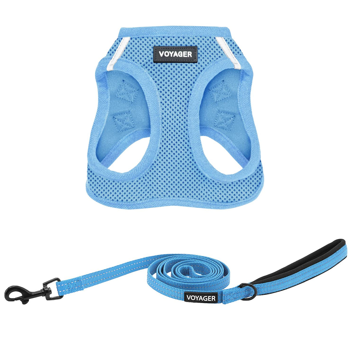 Voyager Step-In Air All Weather Mesh Harness And Reflective Dog 5 Ft Leash Combo With Neoprene Handle, For Small, Medium And Large Breed Puppies By Best Pet Supplies - Leash Harness (Baby Blue), Xxs