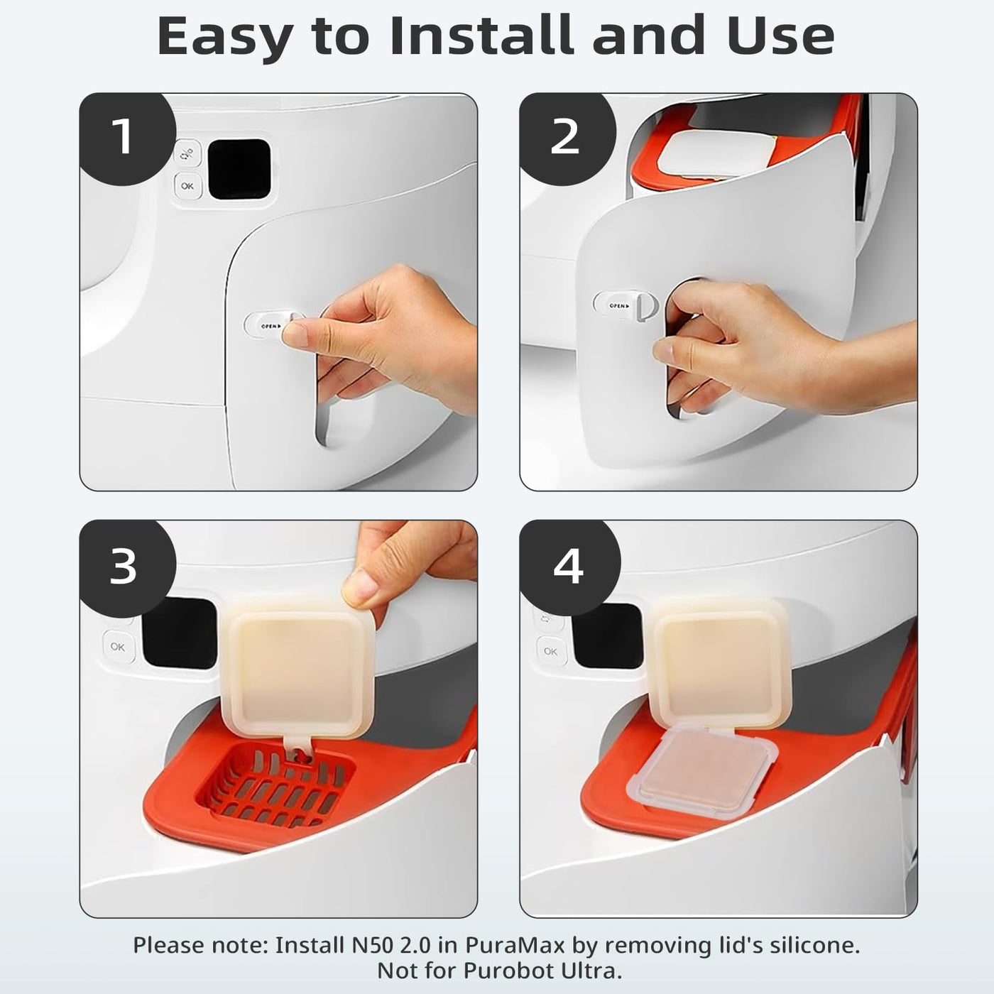 The N50 Odor Eliminator Exclusive, Specifically Formulated For Our Pura Max Automatic Litter Box. The Unique Formula Of The Odor Eliminator Can Effectively Neutralize Unpleasant Smells, Providing You And Your Cat With A Comfortable And Odorless Environment. Each Package Can Last For Up To 30 Days. This Means You Can Have A Month Of Odor-Free Litter Box Usage With Just One Pack. Our Odor Eliminators Are Easy To Replace, Making It Extremely Convenient For Busy Cat Owners. Say Goodbye To Unpleasant Cat Litter Smells And Hello To The Ultimate Cat Toilet Odor Control. Enjoy A Cleaner, Fresher, And More Comfortable Home For You And Your Furry Friend With Our Self-Cleaning Cat Litter Box. Get Yours Now And Experience A Game-Changing Litter Box Technology!