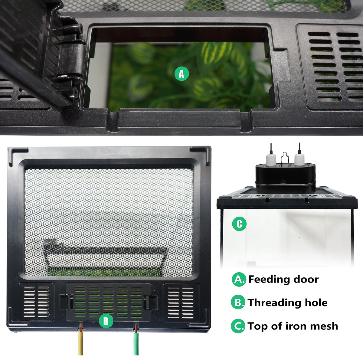 Specification: Size:8*8*12In Product Name:Reptile Glass Tank Material:Full Glass Suitable For:Live Reptile And Amphibians,Such As Frog,Spiders,Dubia Cockroach,Praying Mantis,Cricket,Tarantula,Hermit Crab And Turtle The Material Is Made Of Automotive Grade Float Glass, Abs Plastic Frame,And Painted Metal Mesh, Light Transmittance Up To 90%, Strong And Sturdy, 360Panoramic View, To Create A Natural And Comfortable Habitat For Your Pets.