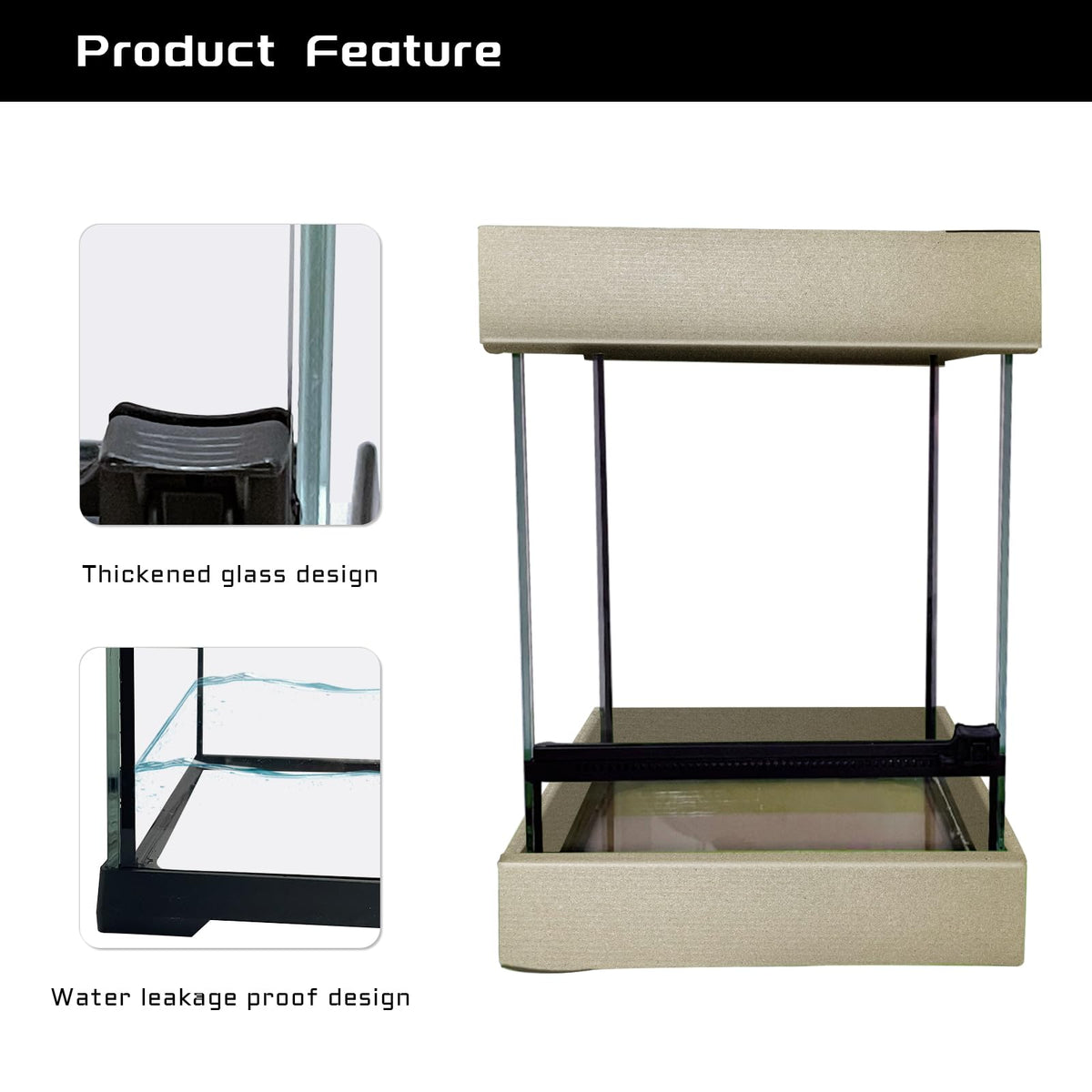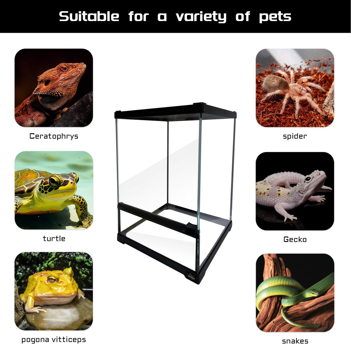 Specification: Size:8*8*12In Product Name:Reptile Glass Tank Material:Full Glass Suitable For:Live Reptile And Amphibians,Such As Frog,Spiders,Dubia Cockroach,Praying Mantis,Cricket,Tarantula,Hermit Crab And Turtle The Material Is Made Of Automotive Grade Float Glass, Abs Plastic Frame,And Painted Metal Mesh, Light Transmittance Up To 90%, Strong And Sturdy, 360Panoramic View, To Create A Natural And Comfortable Habitat For Your Pets.