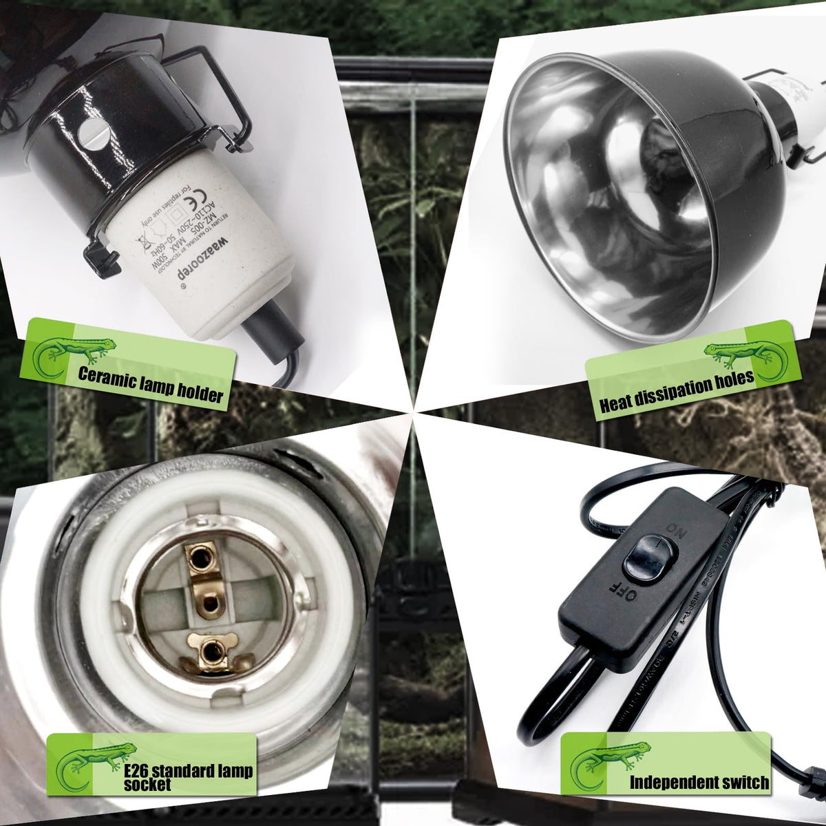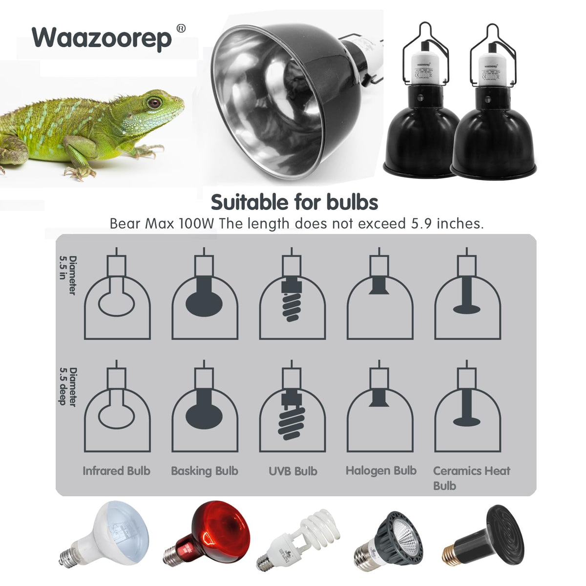 Waazoorep Reptile Light Fixture 2 Pack 5.5 Inch Deep Dome Lamp Fixture,Optical Reflection Reptile Basking Heat Bulb Lampshade Fo