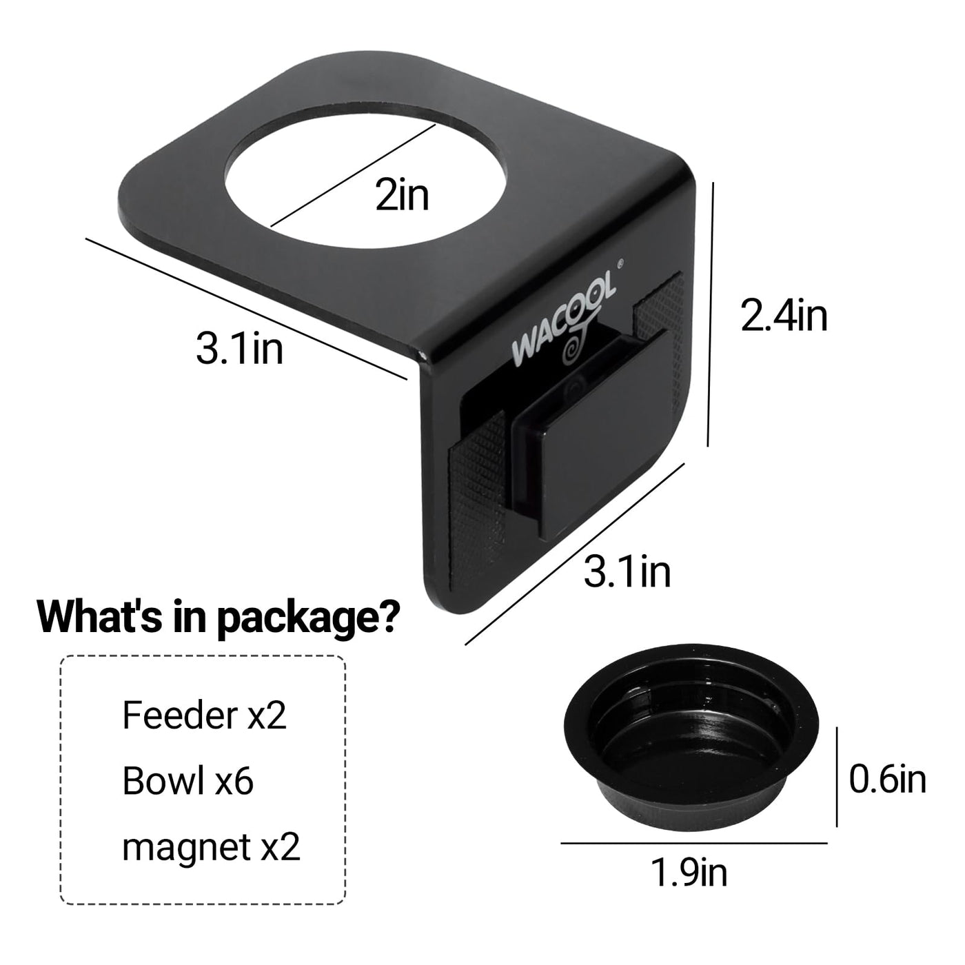 This magnetic gecko ledge feeder is used to suction on the wall of glass terrarium tanks or acrylic boxes, it is a great accessory for your terrarium and feeding your pets. Uses super strong magnets providing an elevated food and water platform, right where geckos prefer to eat. It helps prevent geckos from walking through their food and also keeps insects from drowning in water dishes. The gecko ledge feeder made of high-quality food-grade plastic, steady and durable, non-toxic and safe to your pets, perfect for a gecko, lizards, spiders, snake, frogs, reptiles and other small animal pets for water or food feeding. Gecko Ledge Descriptions: Material: Environmental-friendly acrylic material, food-grade plastic. Color: Black Install Way: Magnetic Save Space, easy change the place. Bowl Internal Diameter:approx.2.0 Suit for: Chameleon, gecko, lizards, spiders, snake, frogs, reptiles and other small animal pets for food water feeding. Package include: 1x gecko feeder + 6pcs bowls
